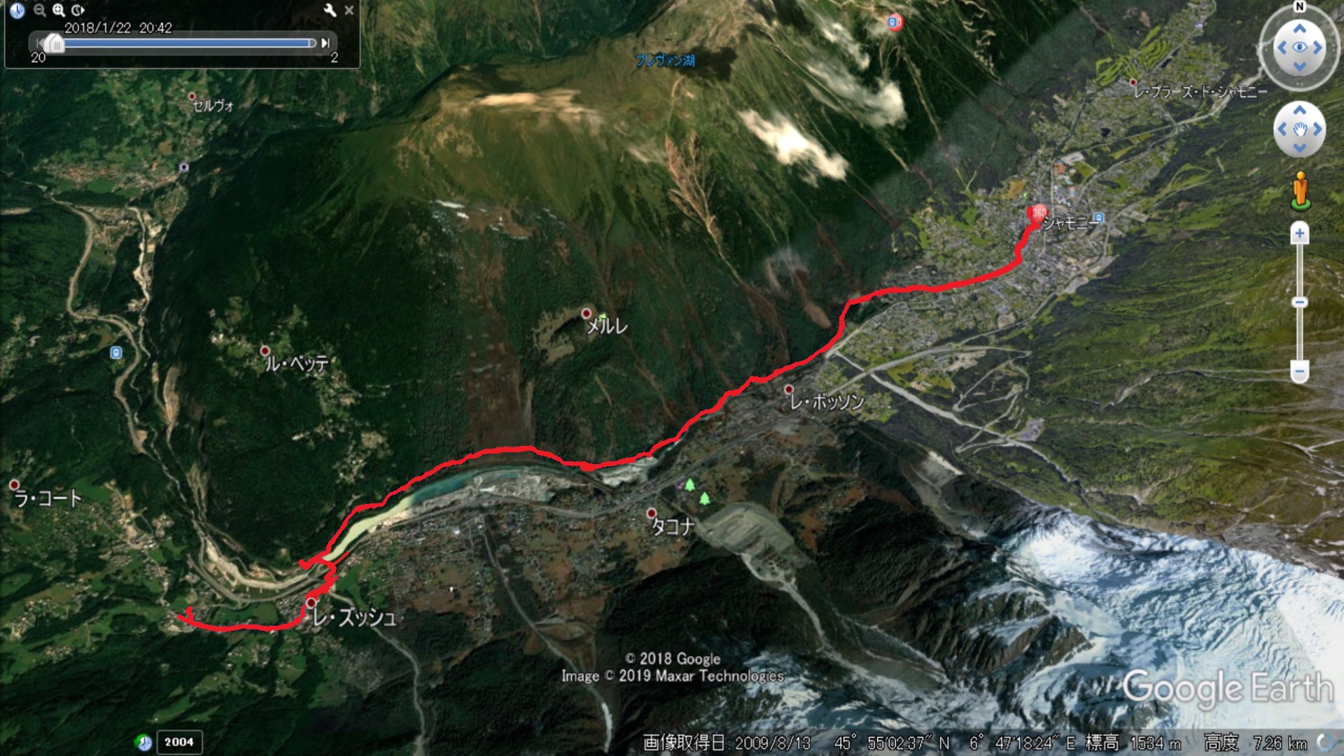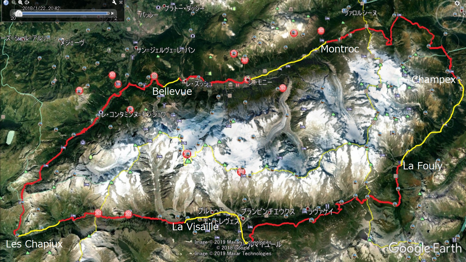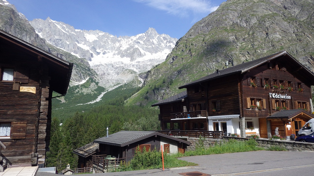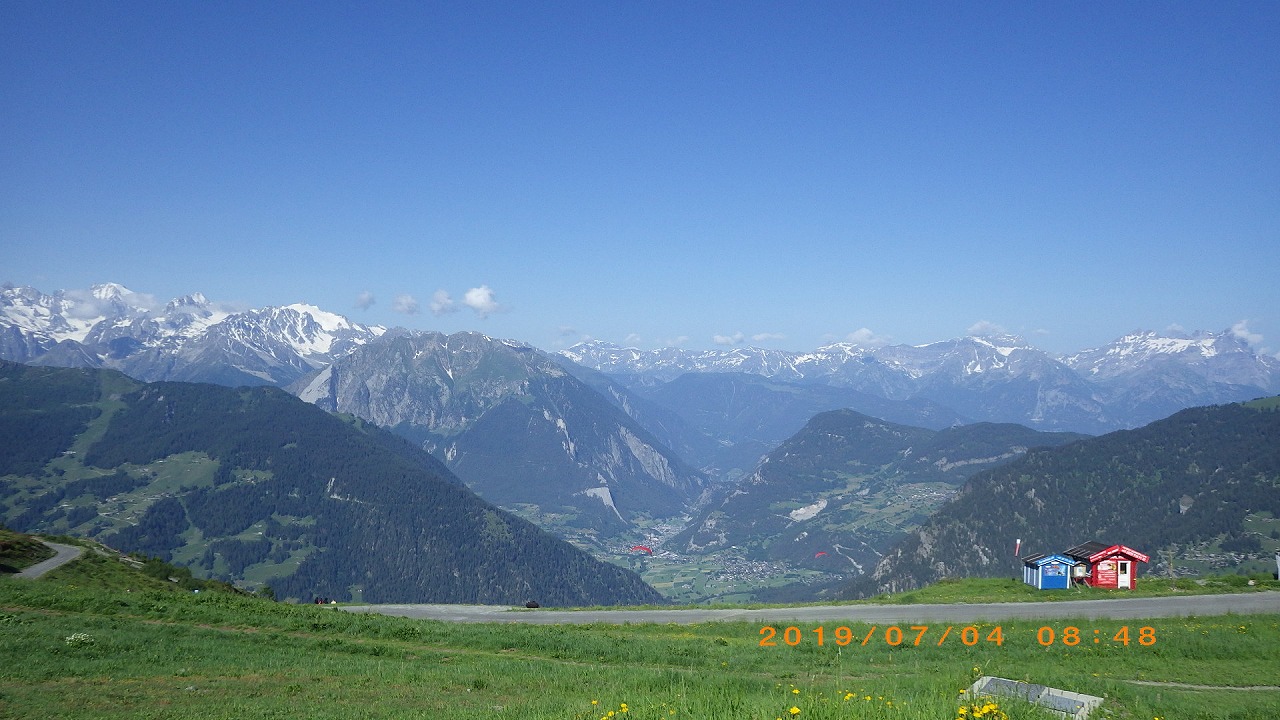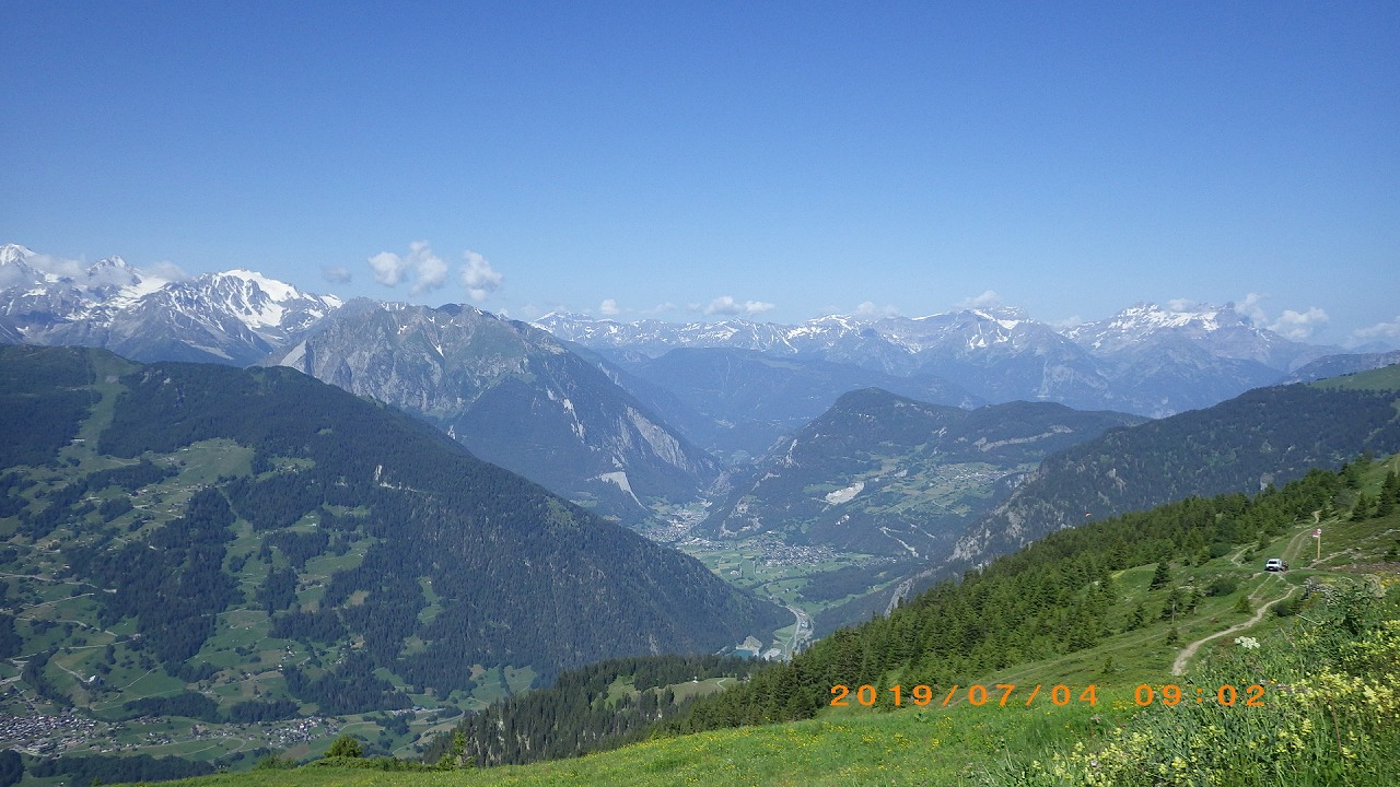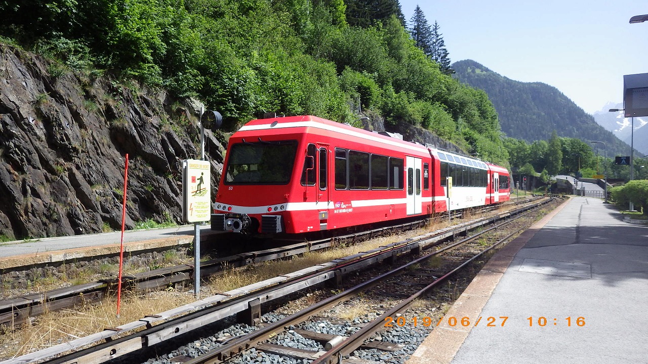 | Les Houcheの街を見下ろす | Boza峠駅 | Boza峠付近から見るMont Blanc山群 |