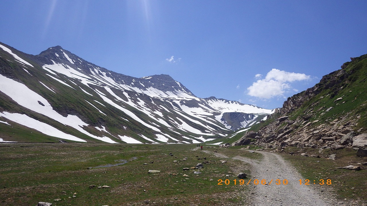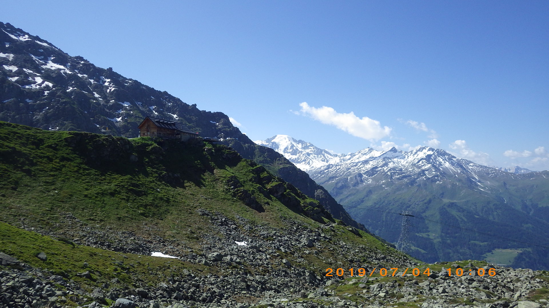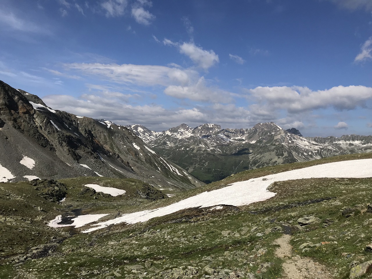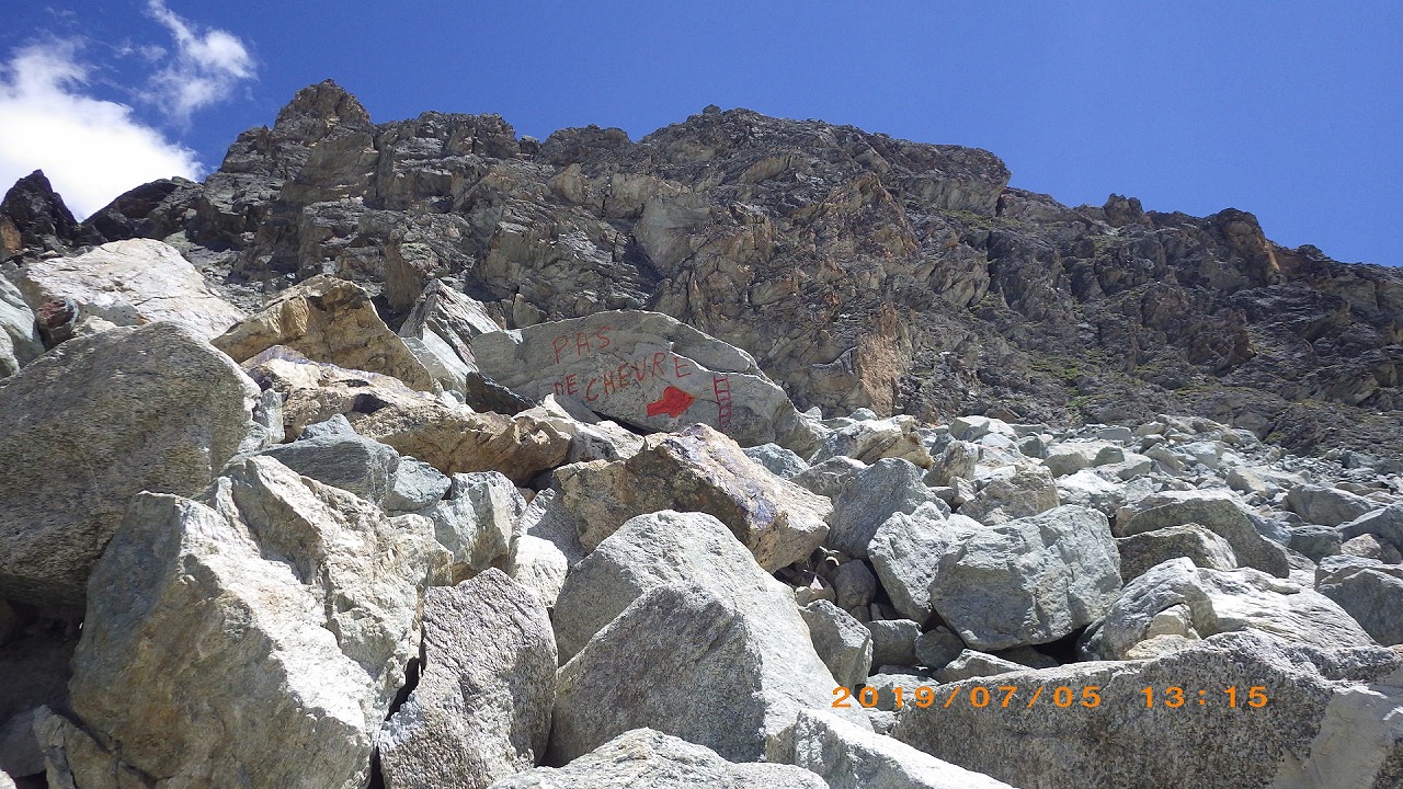 | 視界の開けたアルプ地帯を過ぎるとガレ場地帯になる | Augstbordpass手前の最後のガレ場 | |
