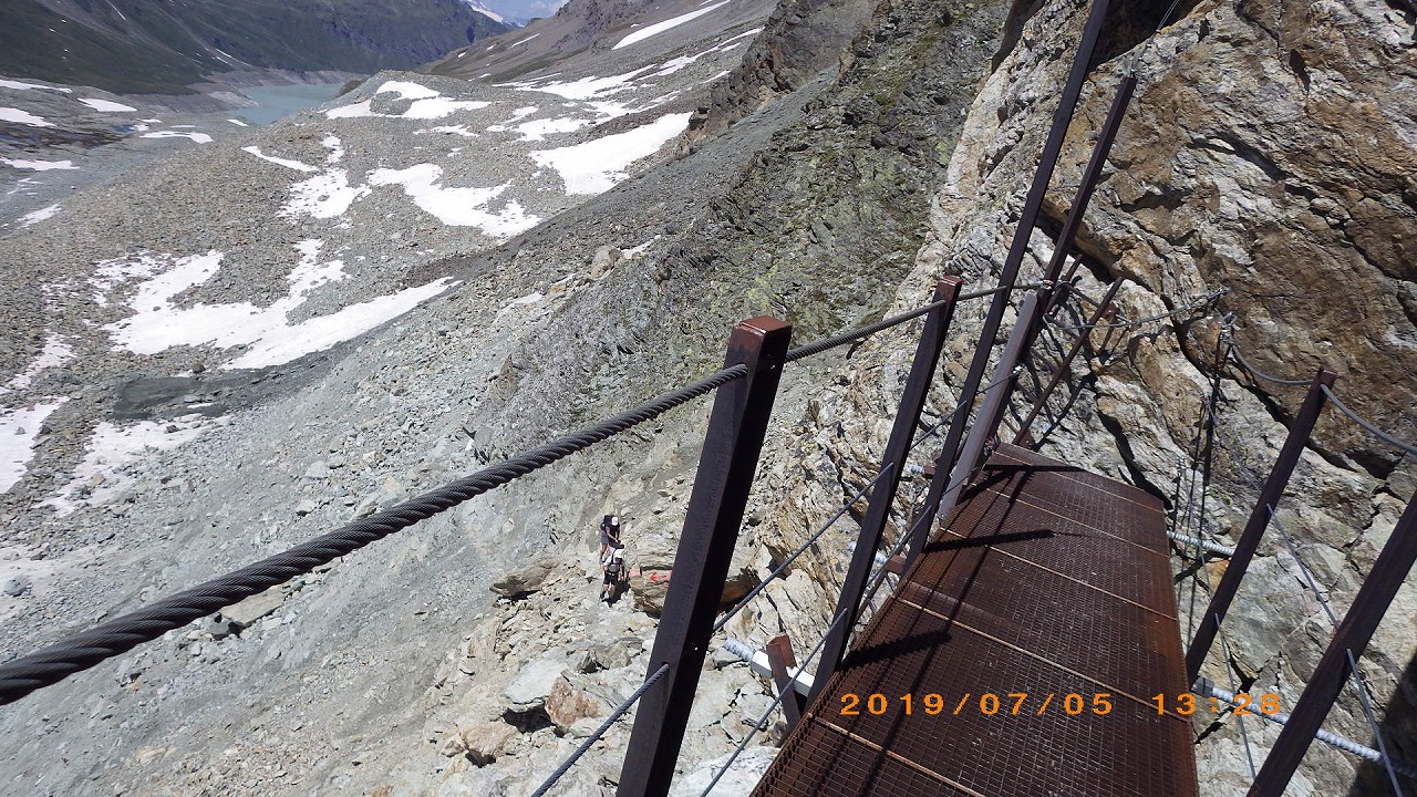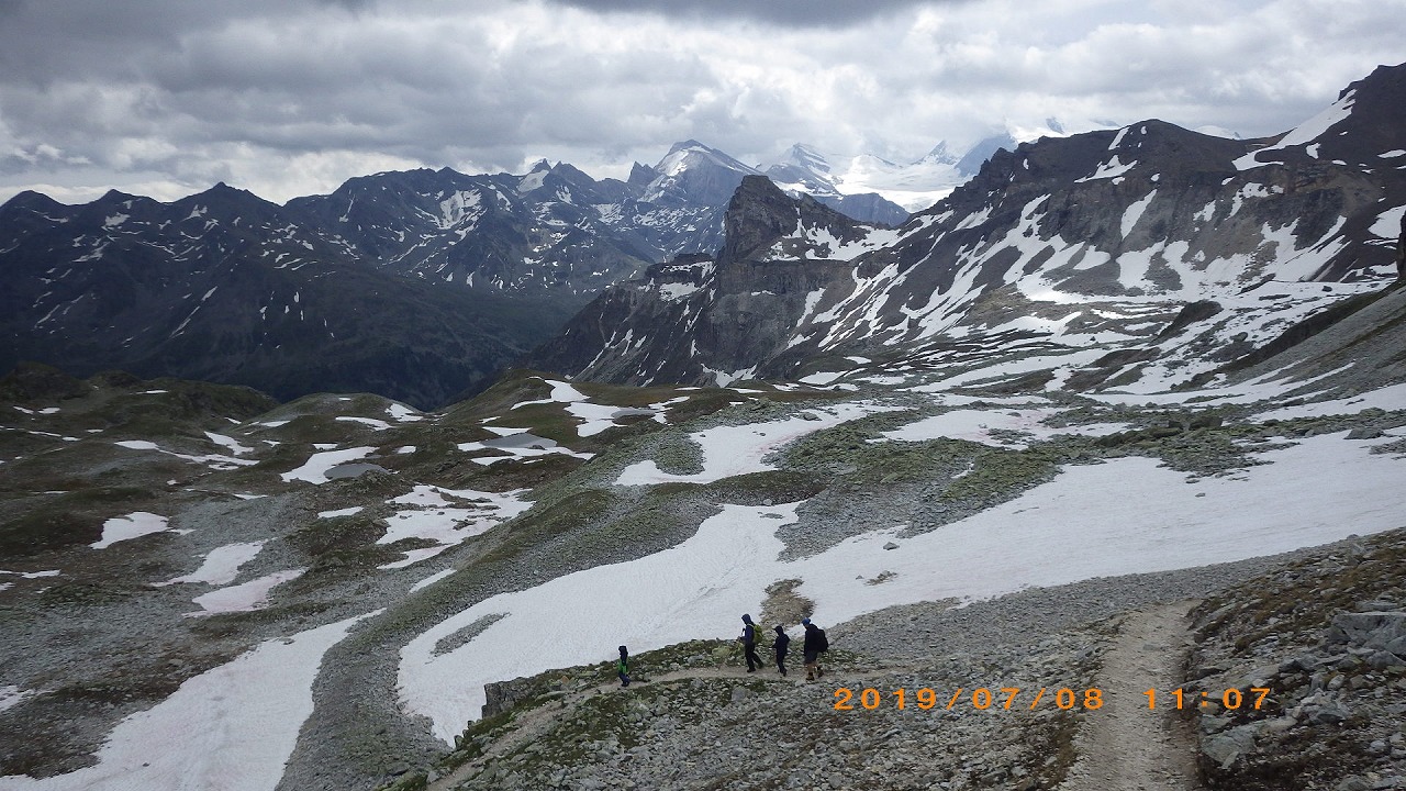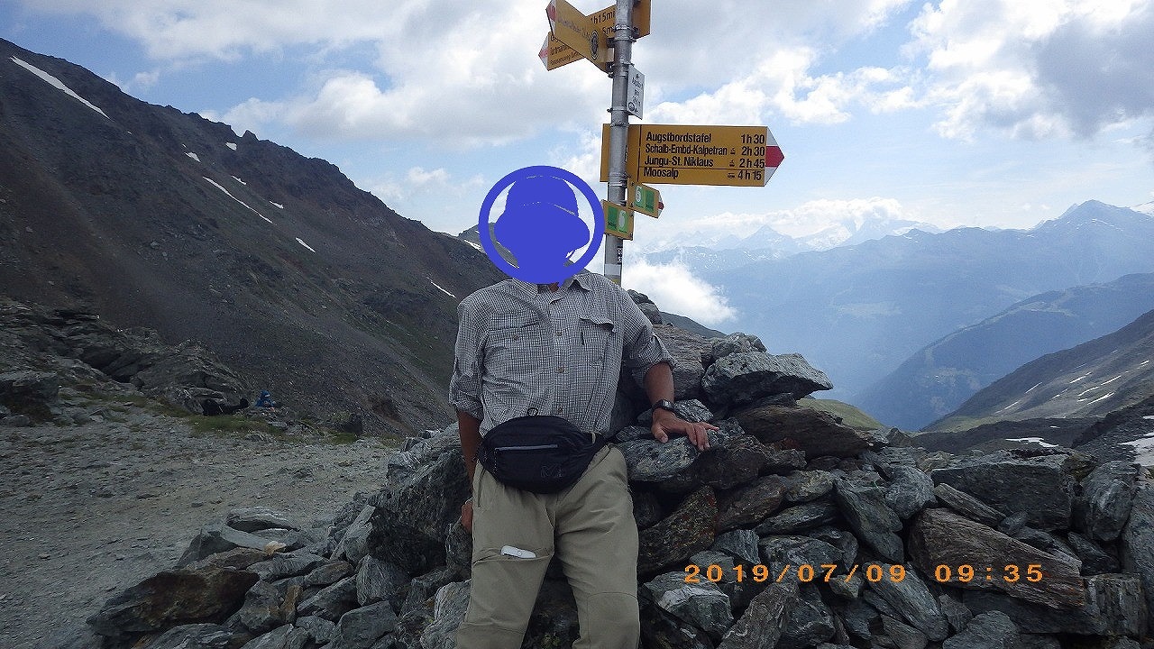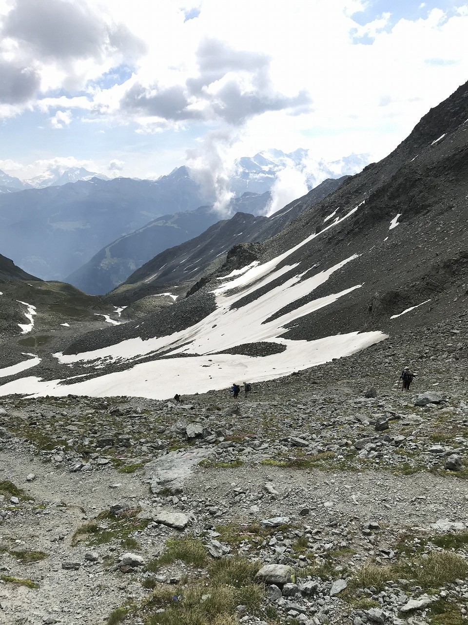 | Augstbordpassで居合わせた登山者に写真を撮って貰った | Augstbordpassからの下り | |