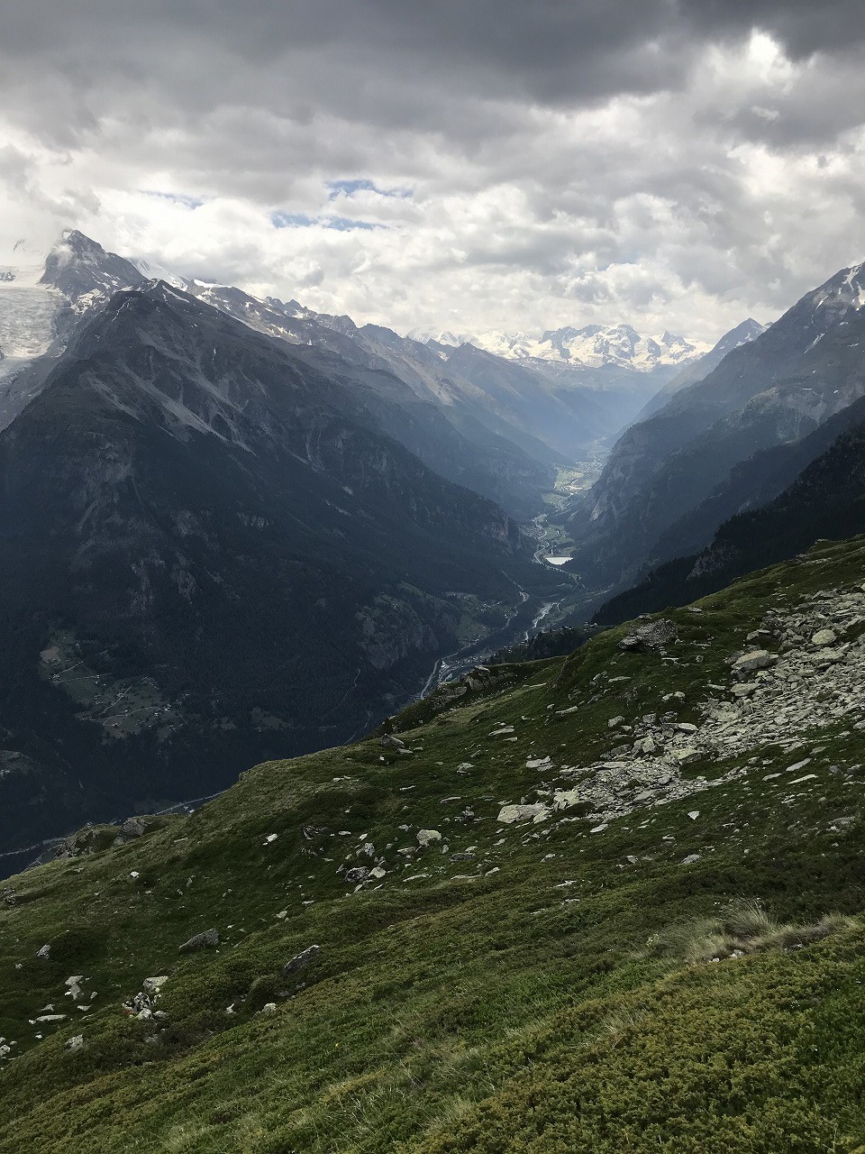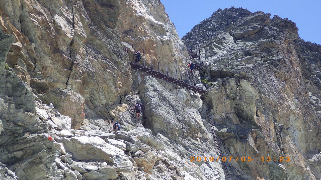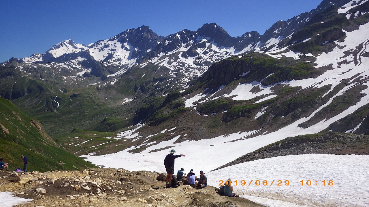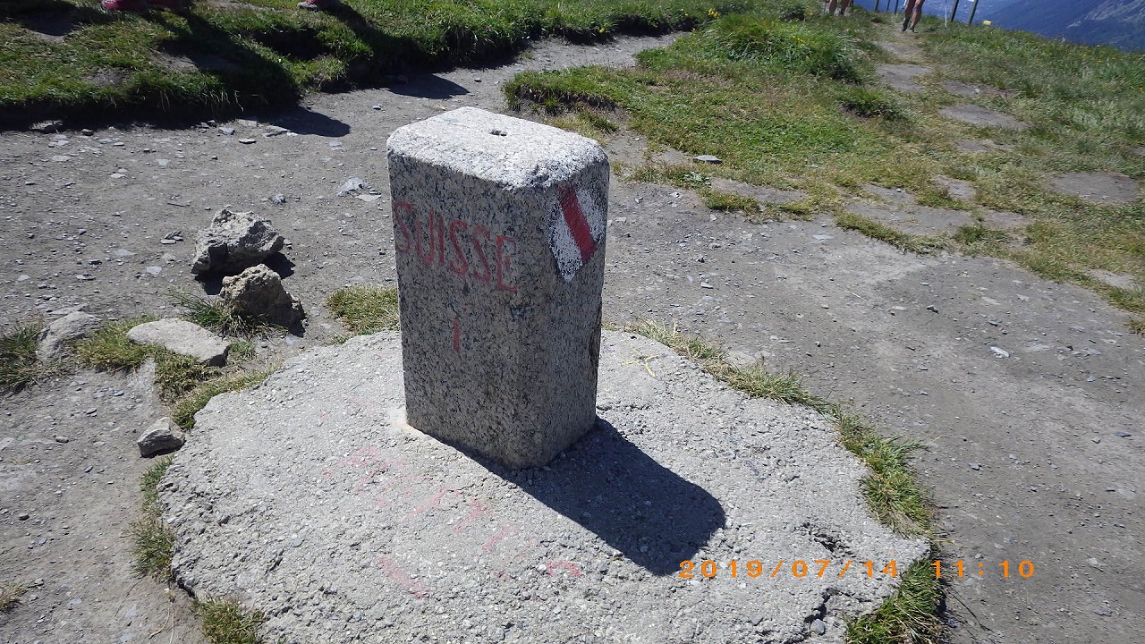 | Augstbordpassで居合わせた登山者に写真を撮って貰った | Augstbordpassからの下り | |