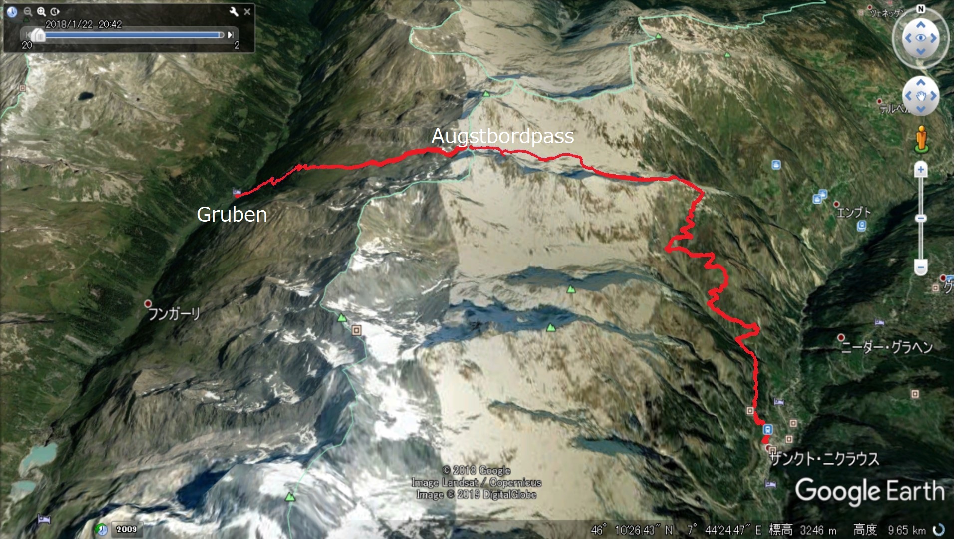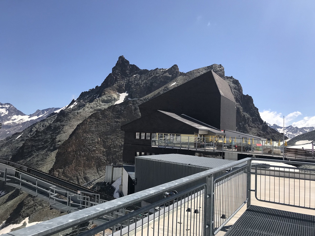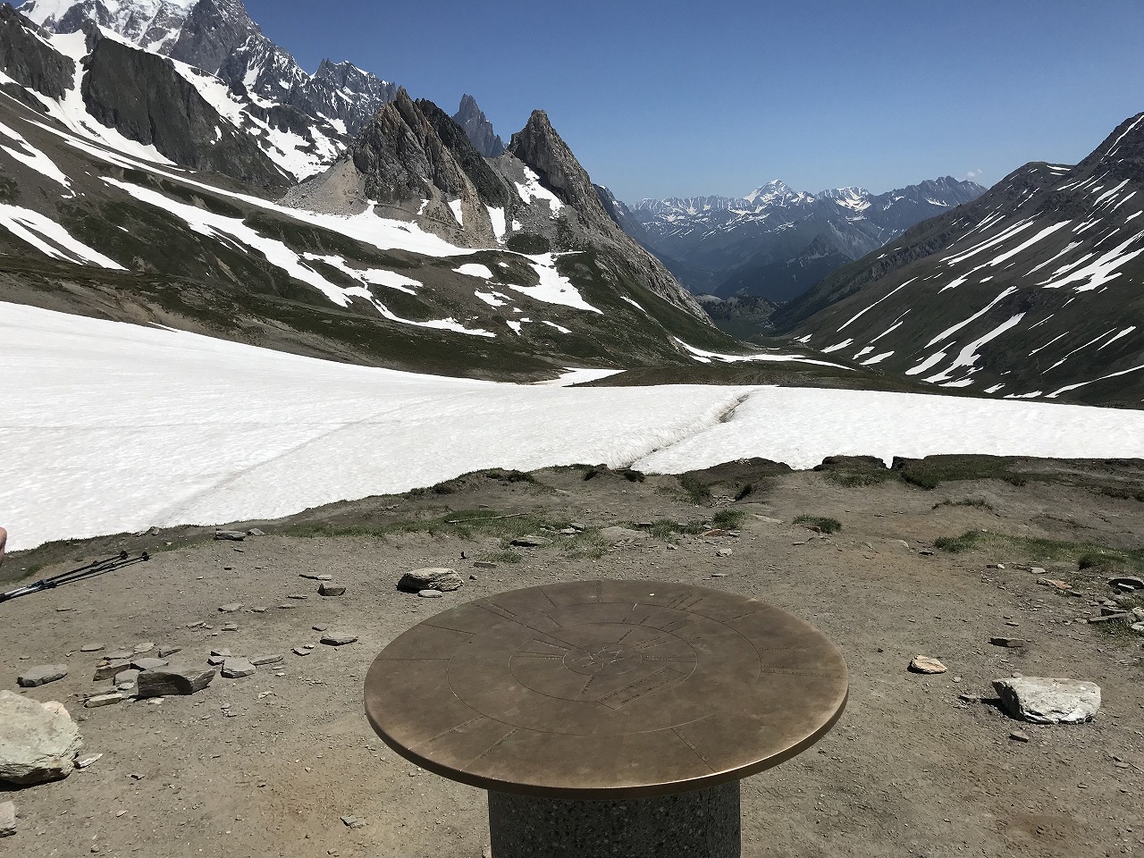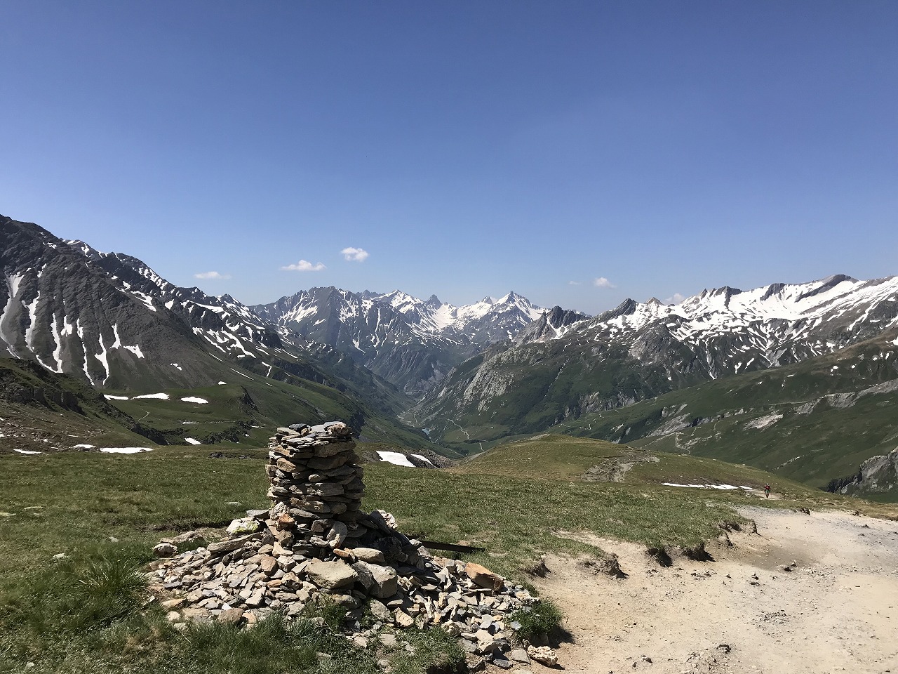| Augstbordpassで居合わせた登山者に写真を撮って貰った | Augstbordpassからの下り | |