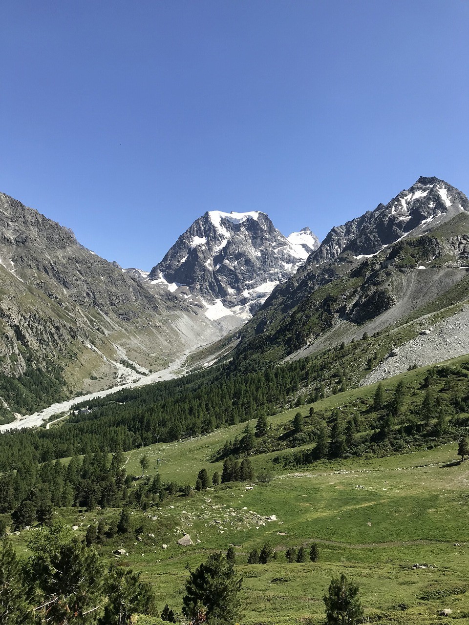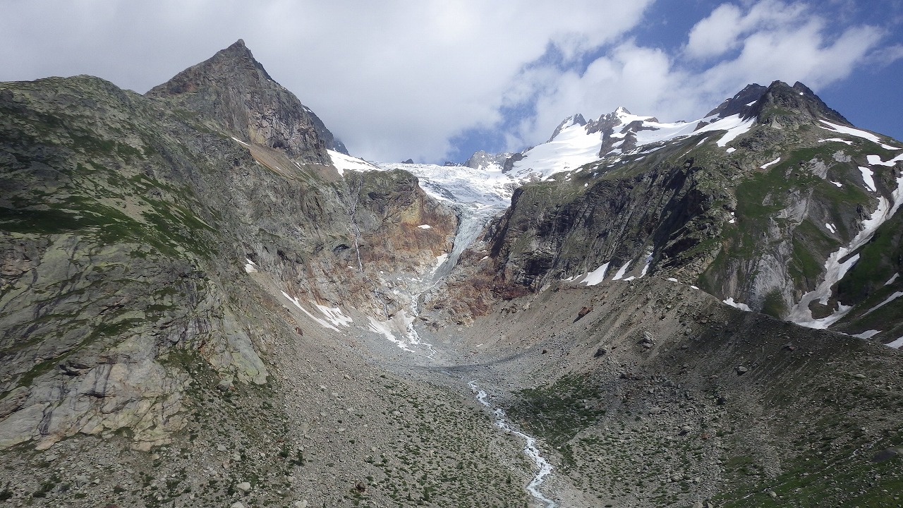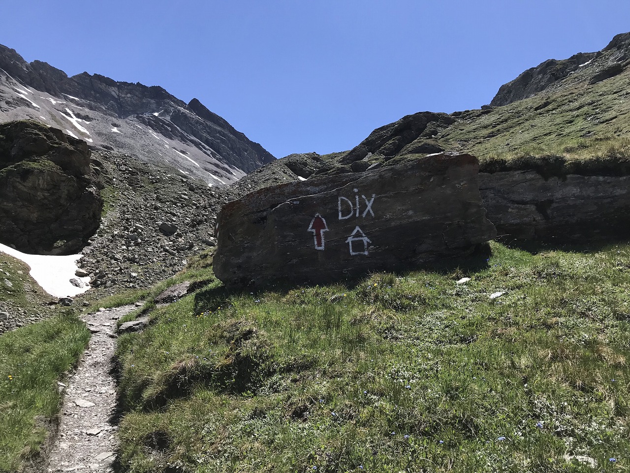 | DIX小屋への分岐標識 | 氷河から流れる河を渡る | シェーブル峠手前の登り |