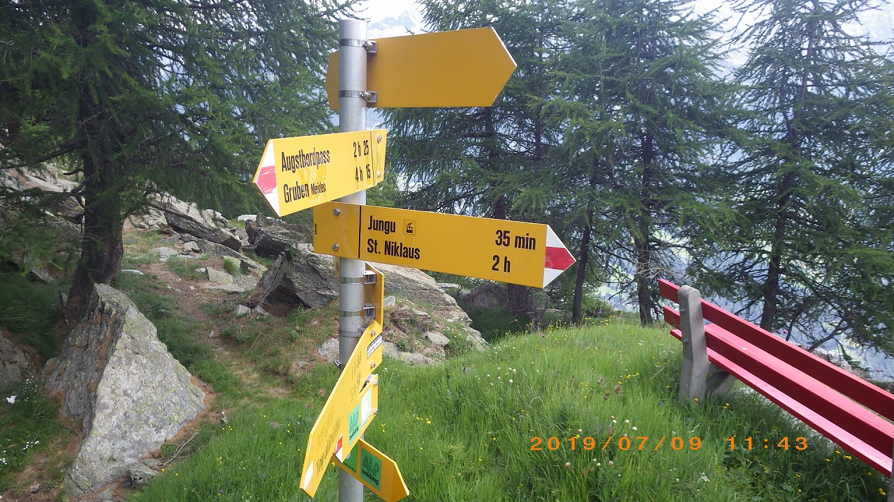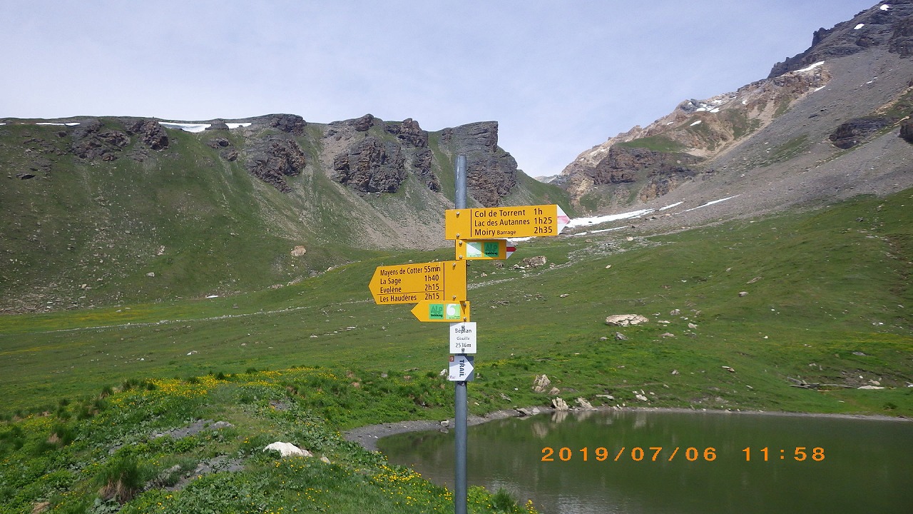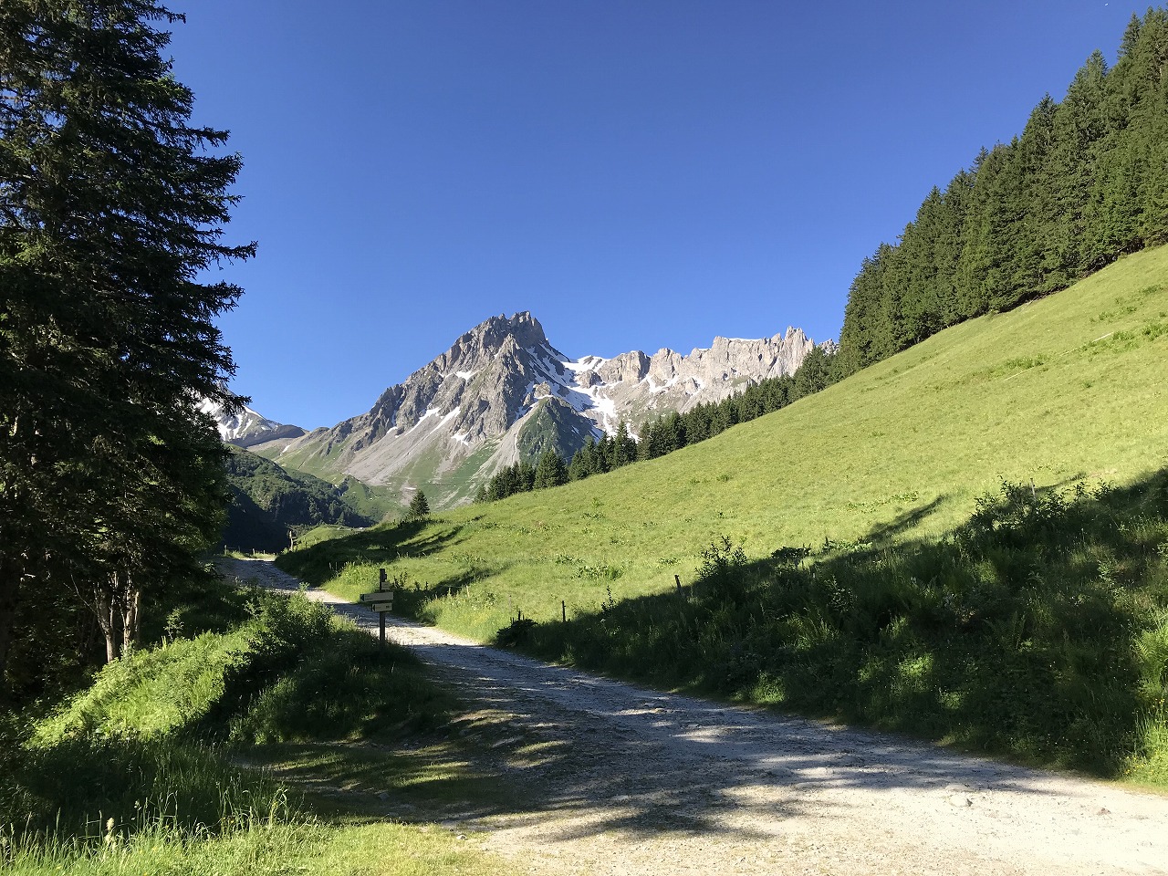 | ミディ針峰 | 散歩道を歩いてBellevueへ | ベラシャ小屋への案内標識 |