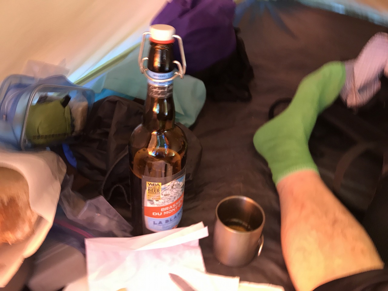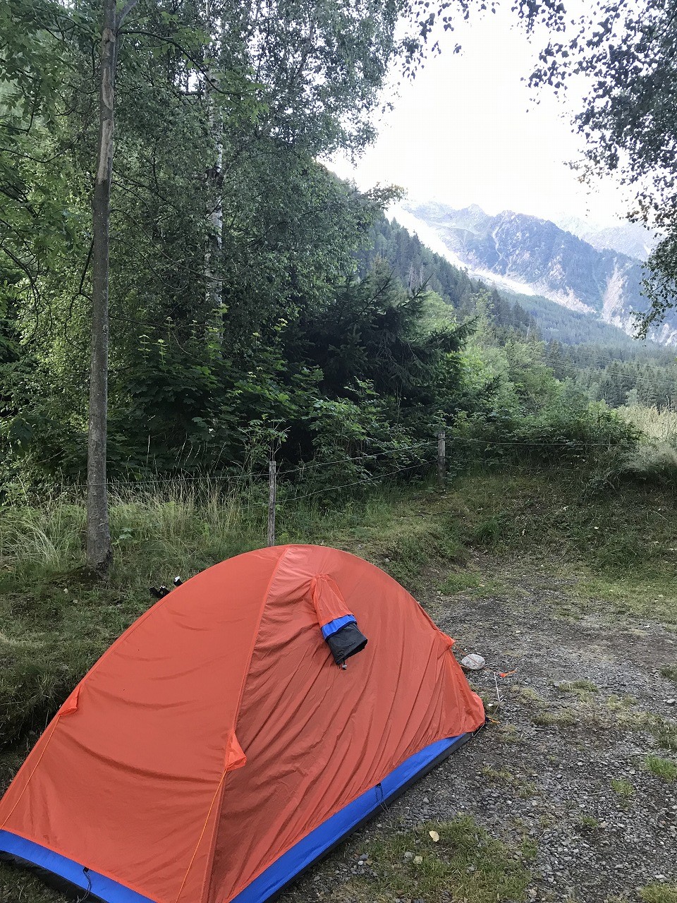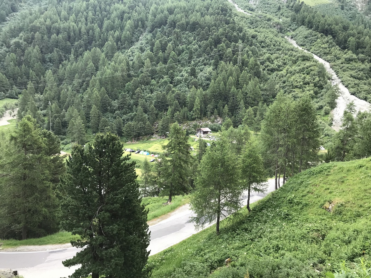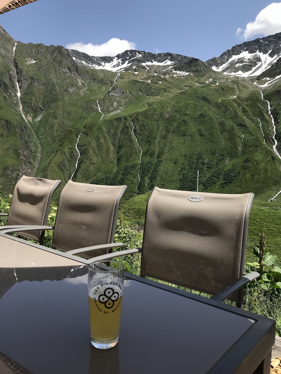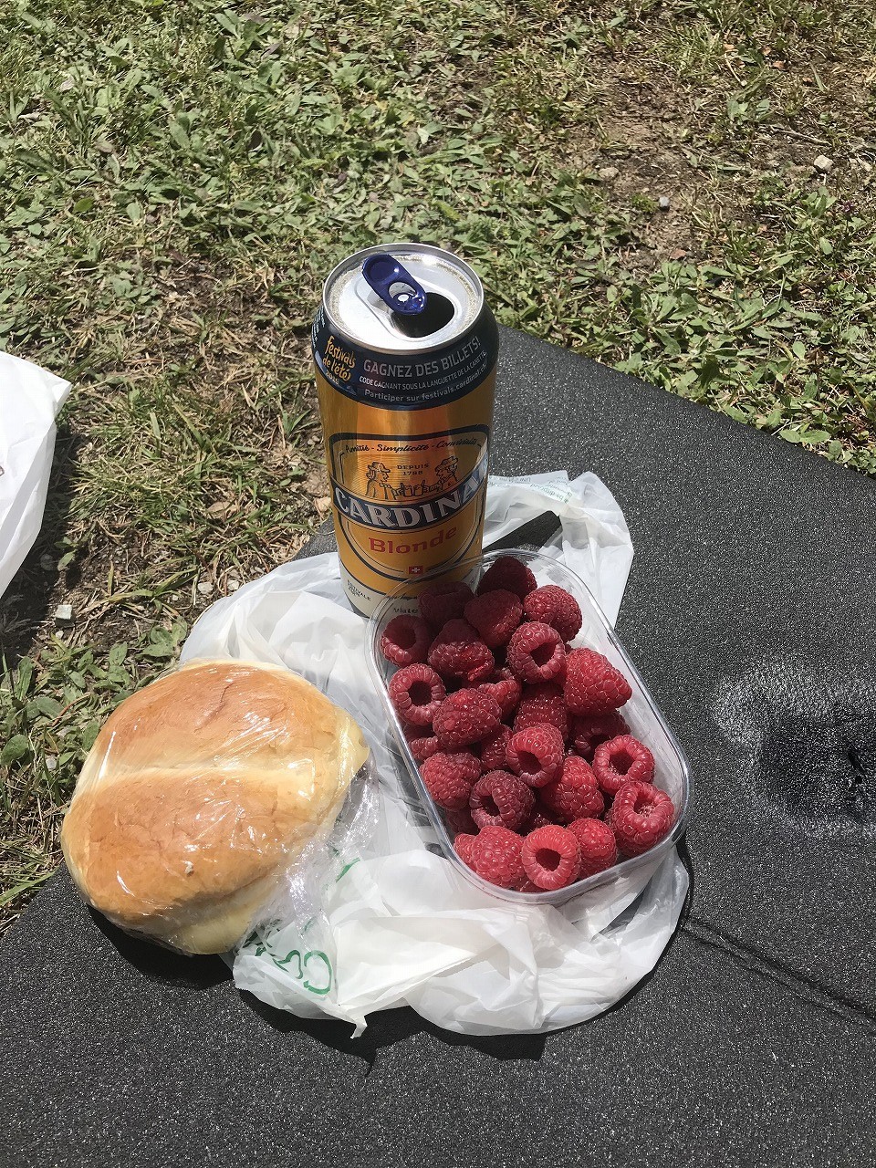 | Col de ForclazのCamp場でビールと道路の向かいの露天で買ったベリーでくつろぐ | ||