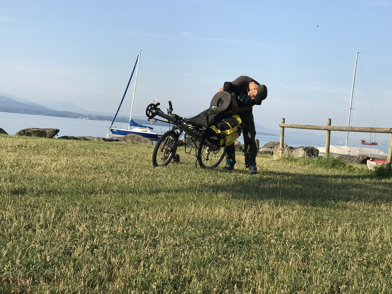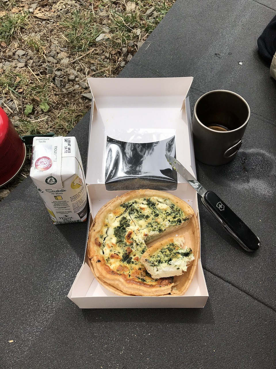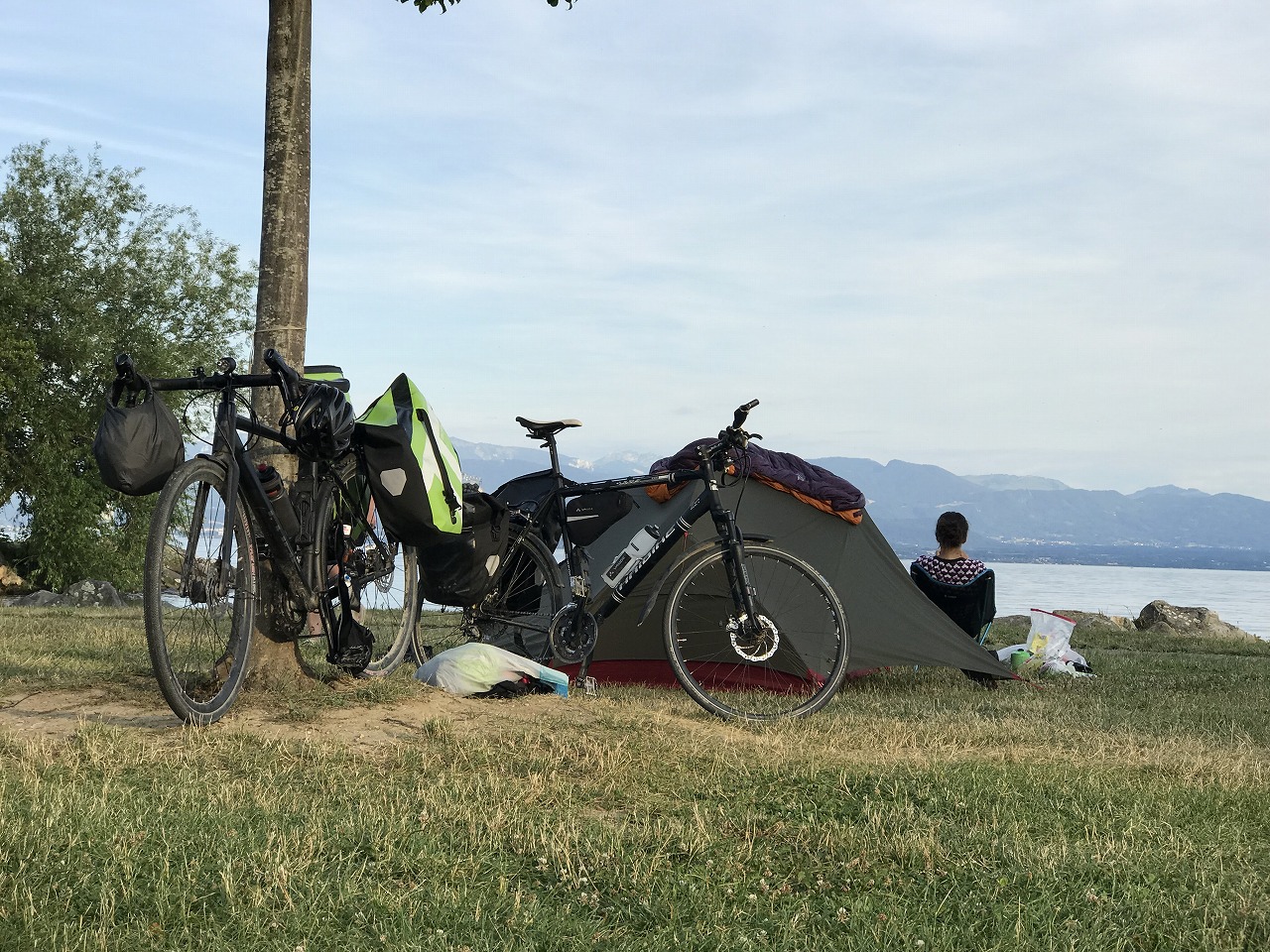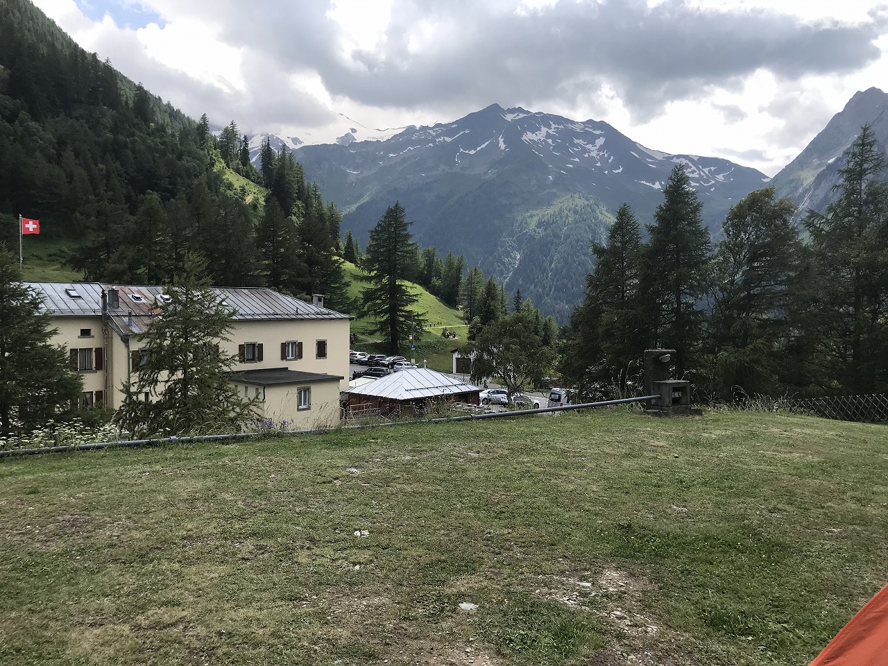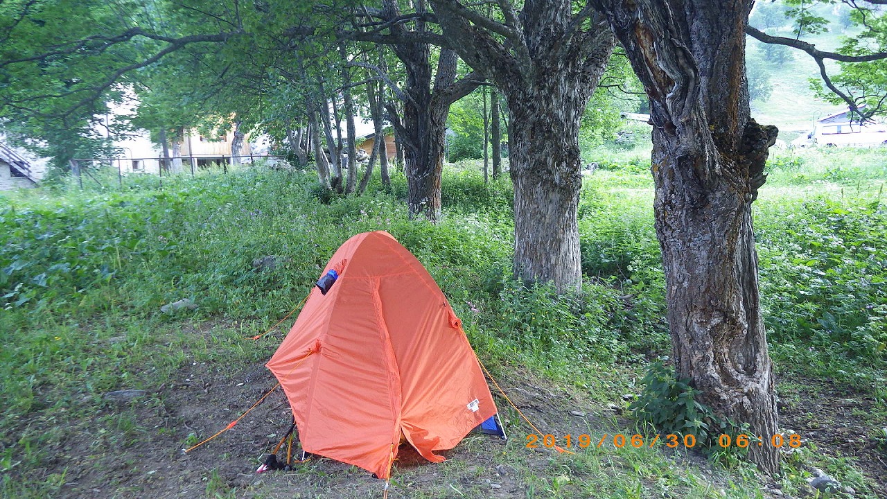 | Col de ForclazのCamp場でビールと道路の向かいの露天で買ったベリーでくつろぐ | ||