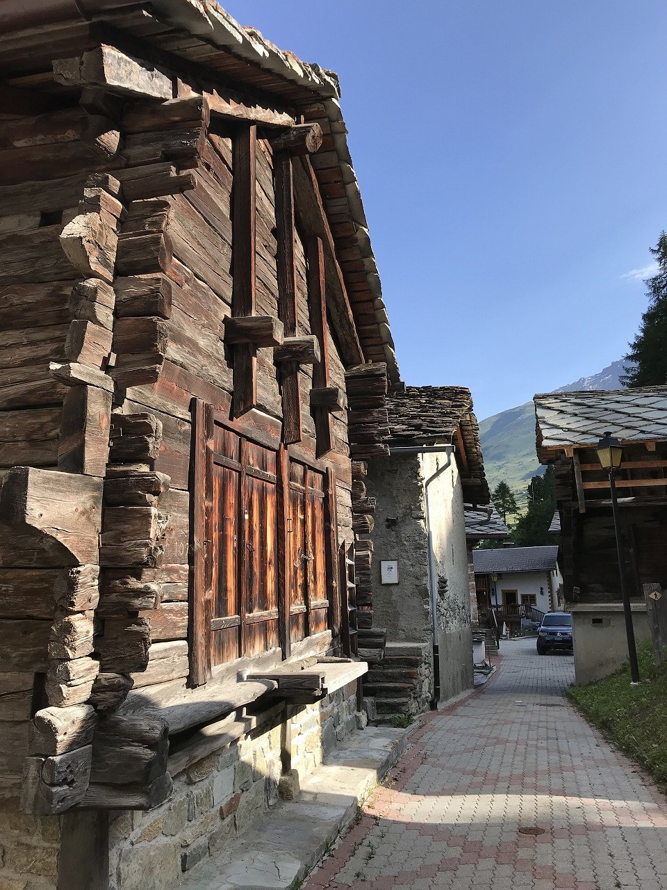 | VissoieからSt-Lucまで古い街並みを抜けて歩いて上がる | ||