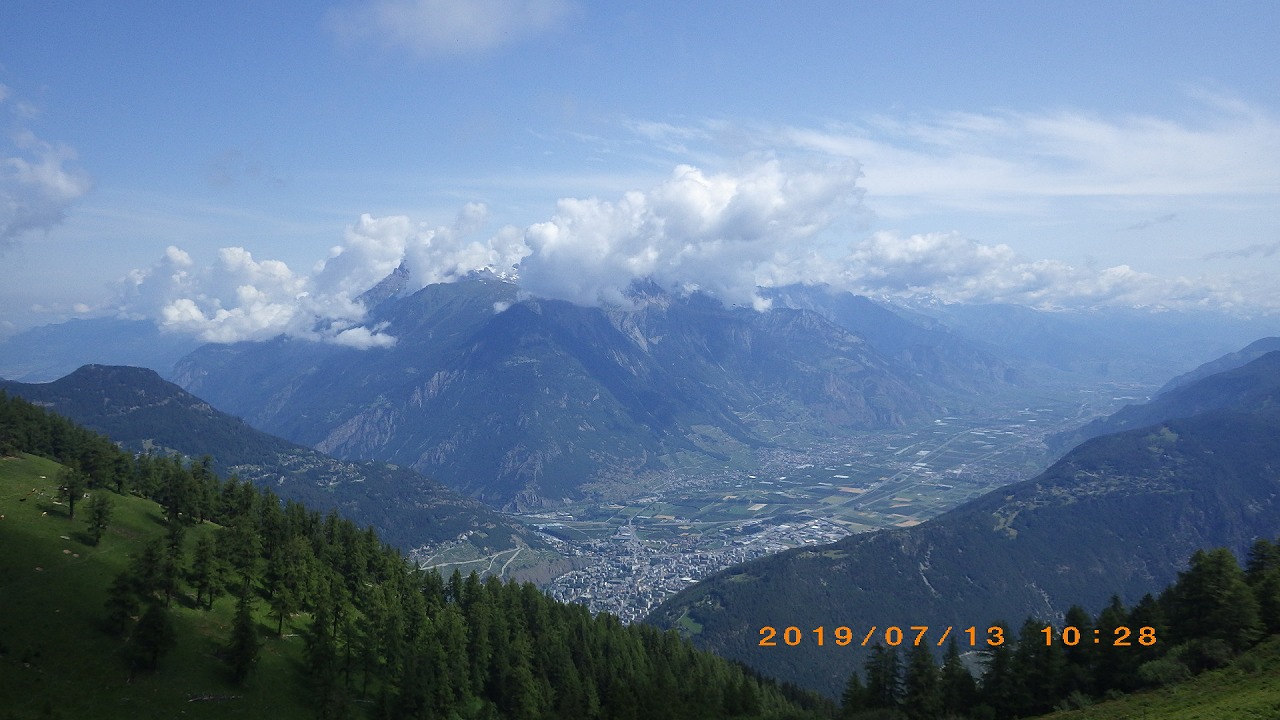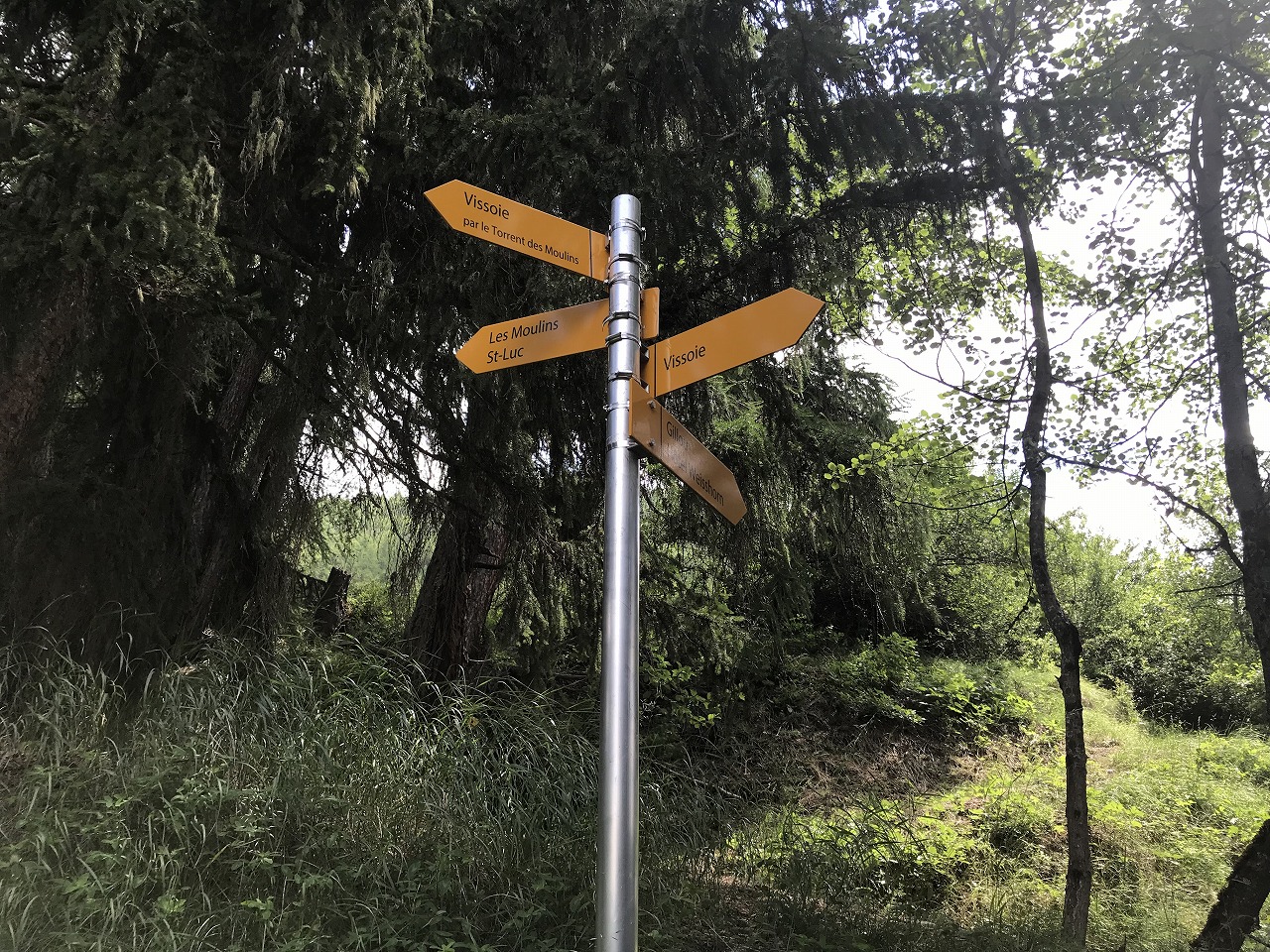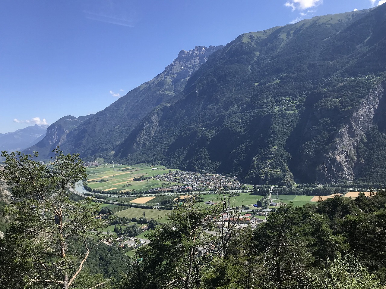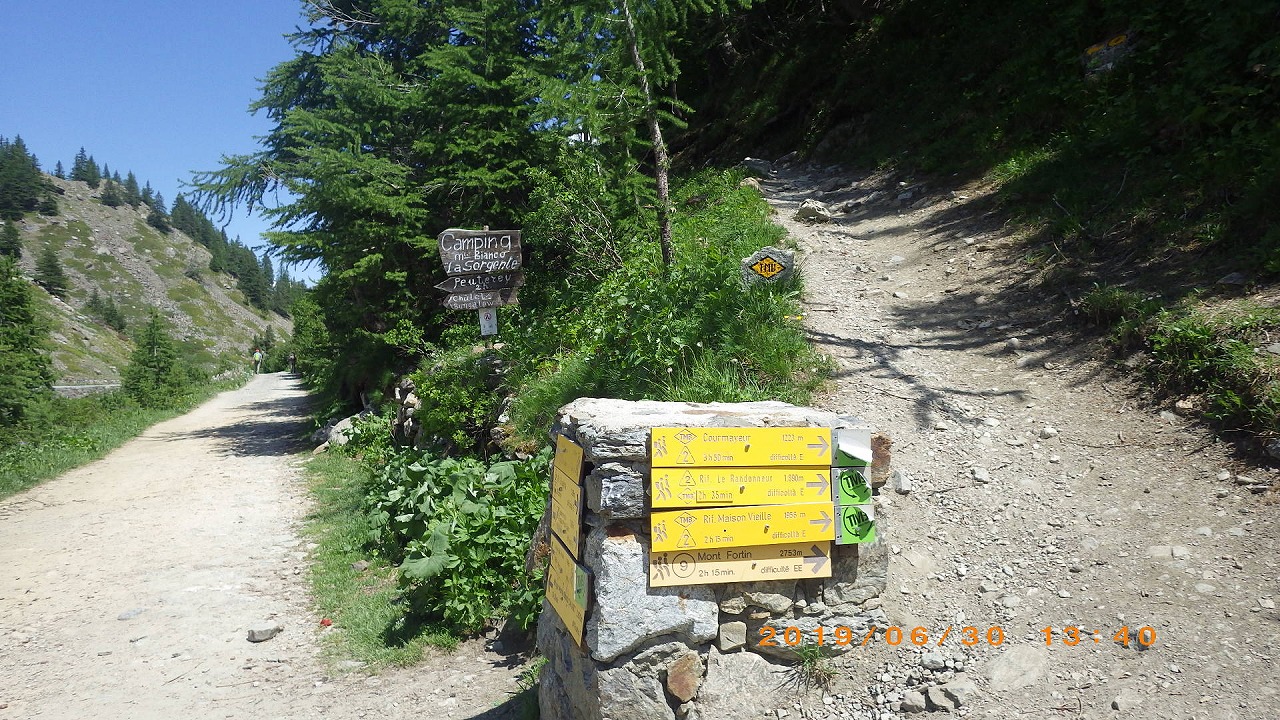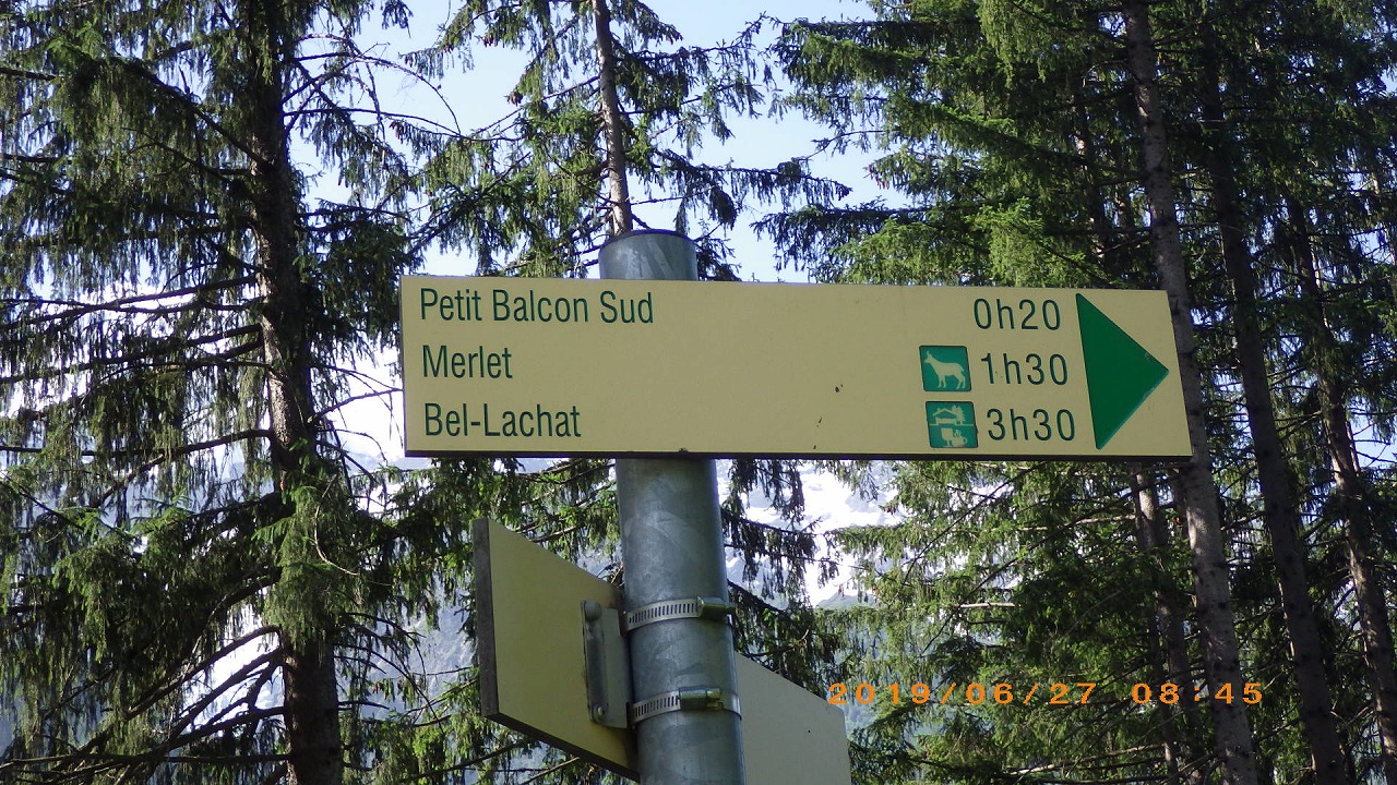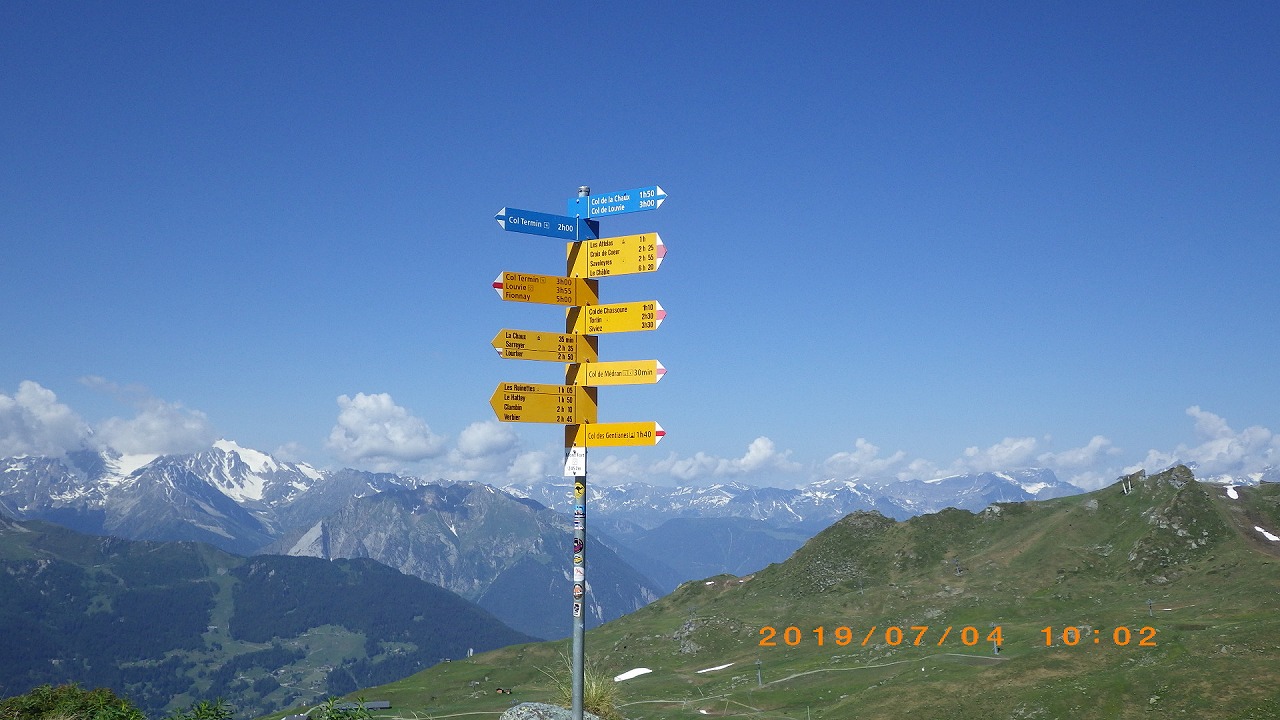 | Col de Forclazまで4h40の表示 | マルチニーを見おろす | 樹林帯を通過 |