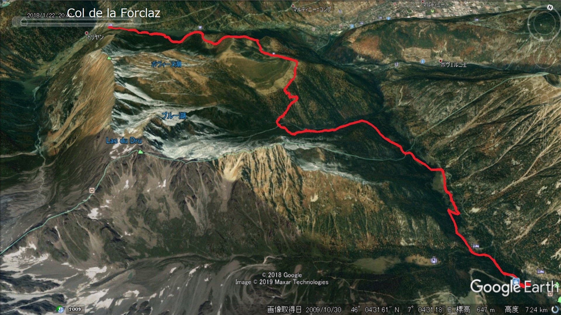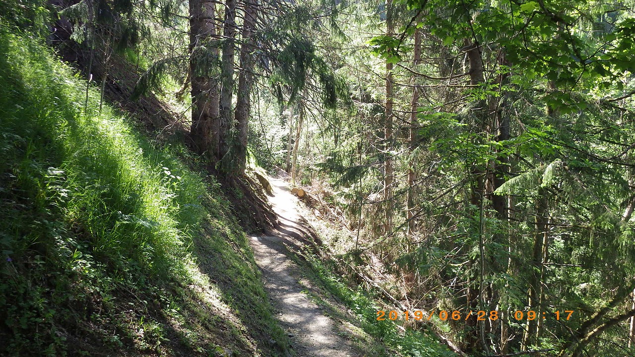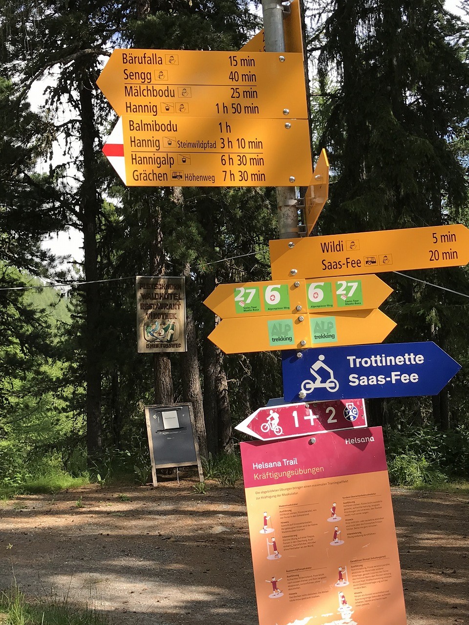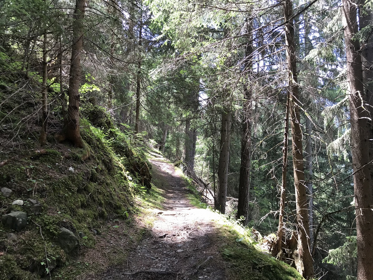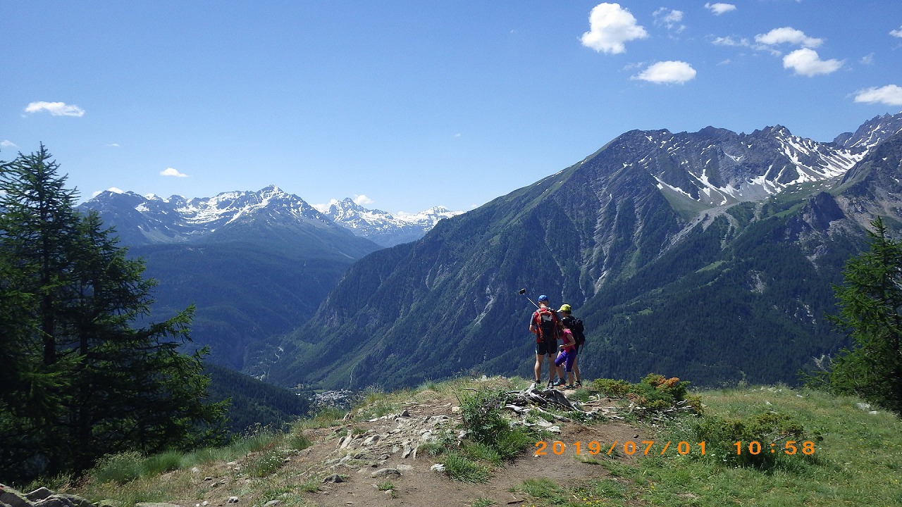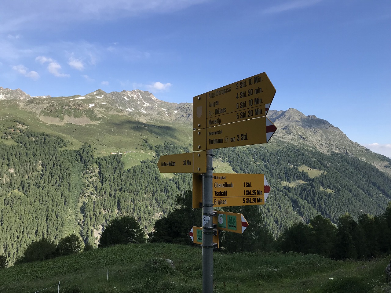 | Col de Forclazまで4h40の表示 | マルチニーを見おろす | 樹林帯を通過 |