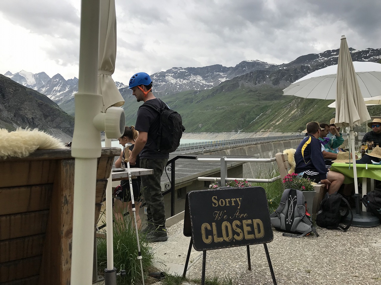 | 結構な数の人たちがくつろいでいる。小屋のレストランの横で昼食 | ||