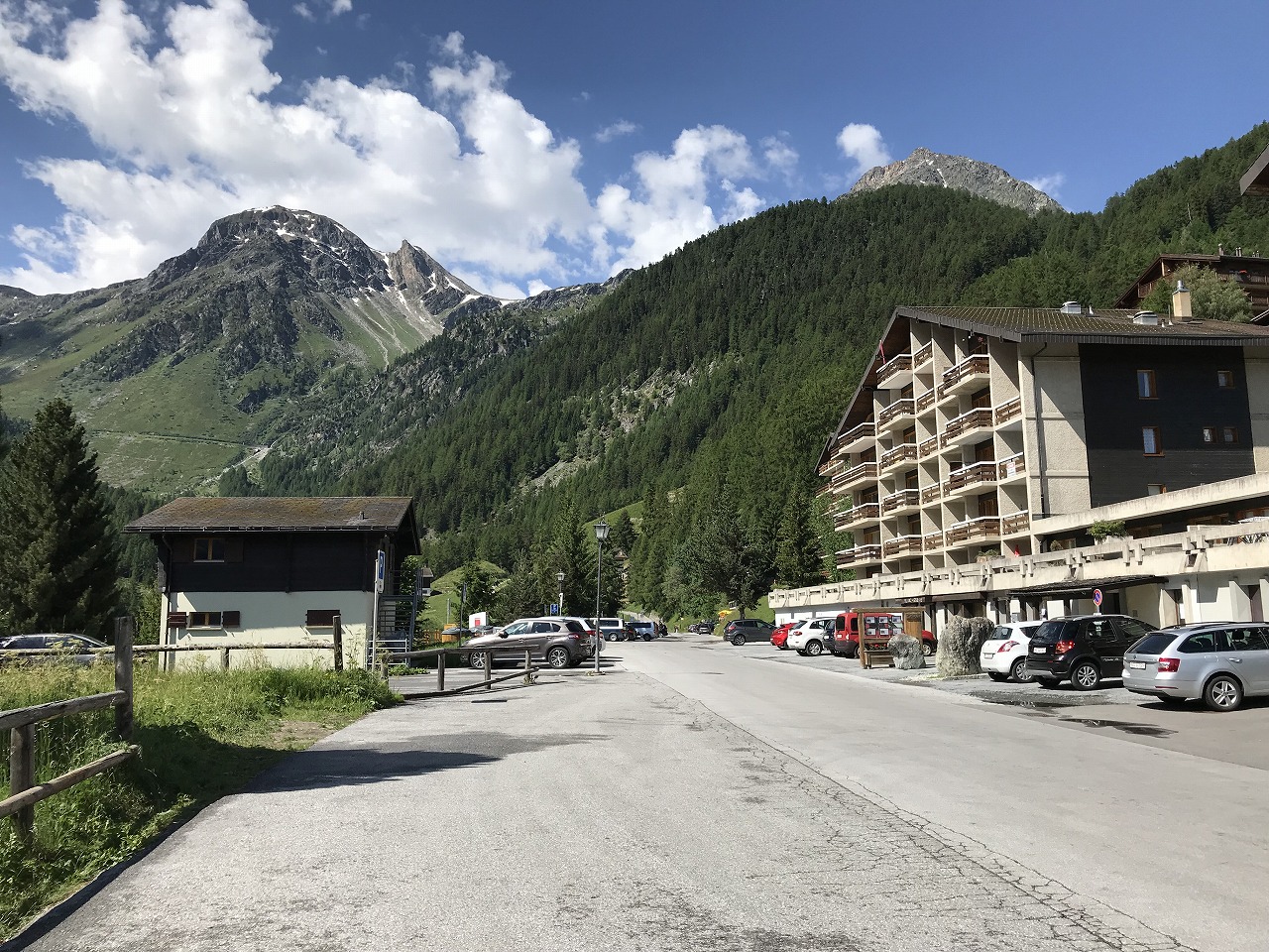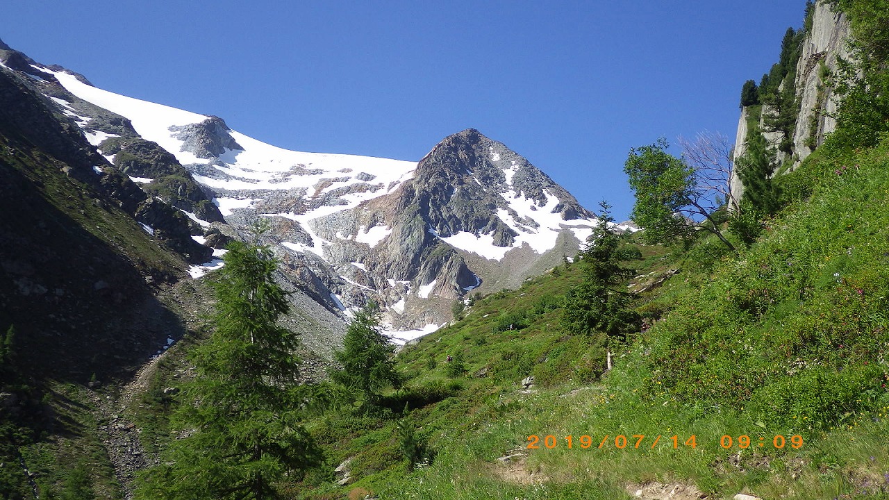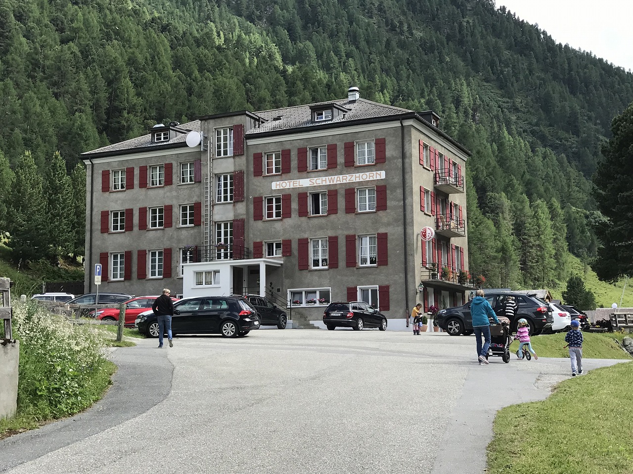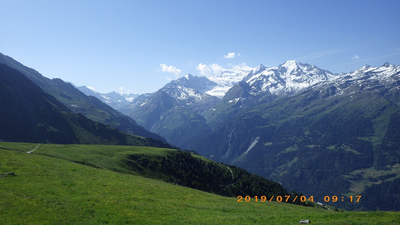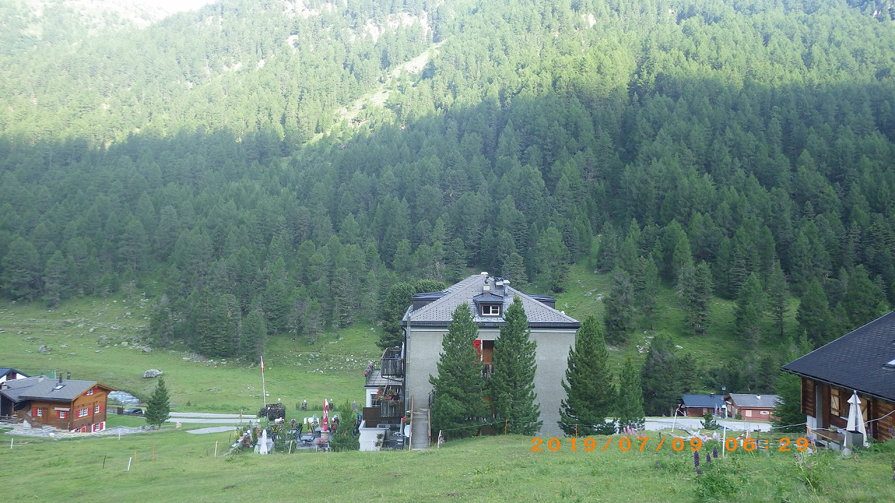 | 登山道はホテルシュワルツホルンの横から始まる | 谷を挟んだ向かい側の山 | |
