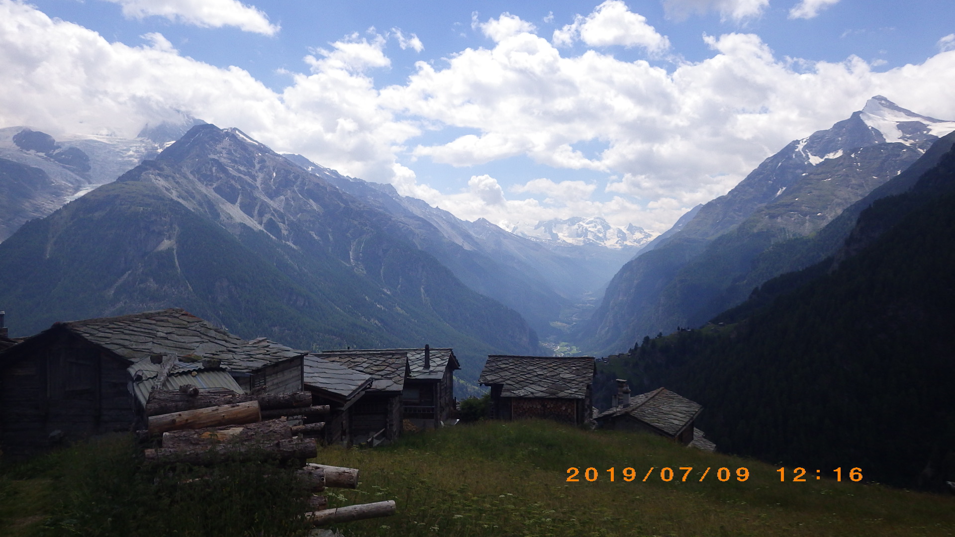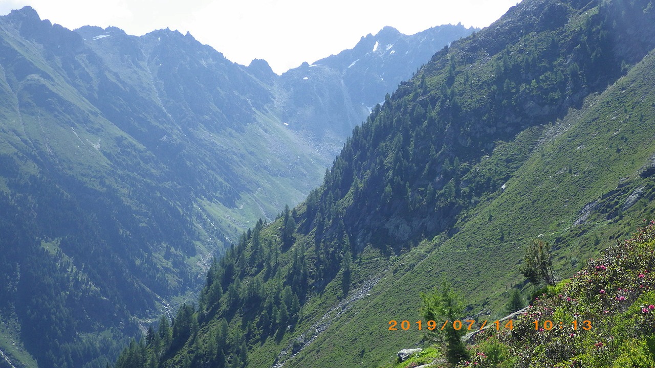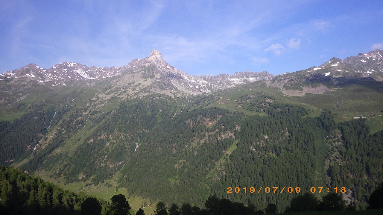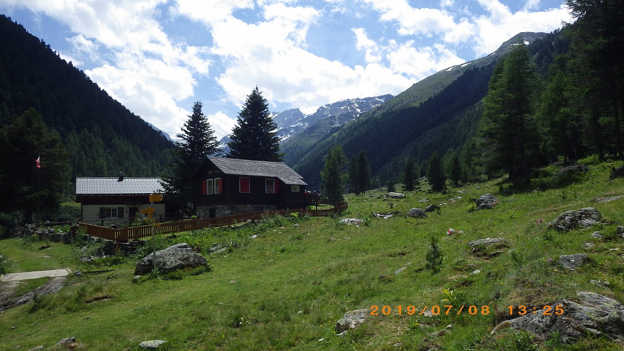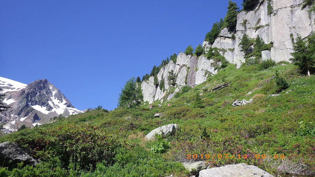 | 登山道はホテルシュワルツホルンの横から始まる | 谷を挟んだ向かい側の山 | |
