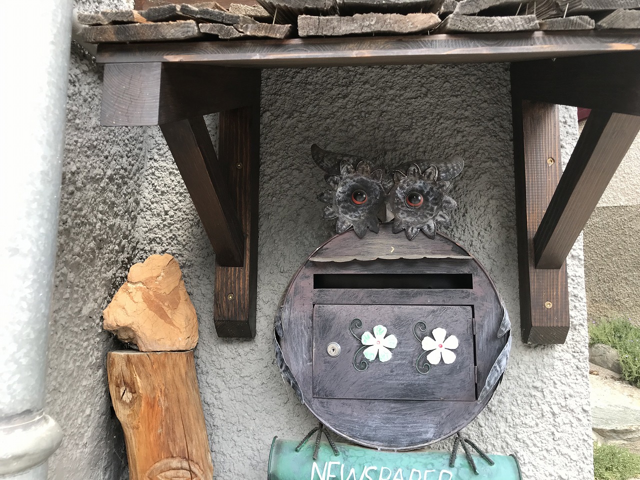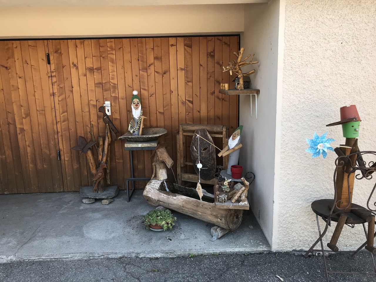| 道脇の景色を楽しみながら | 岩登りの練習場所がある | 民家の前にあるディスプレー |