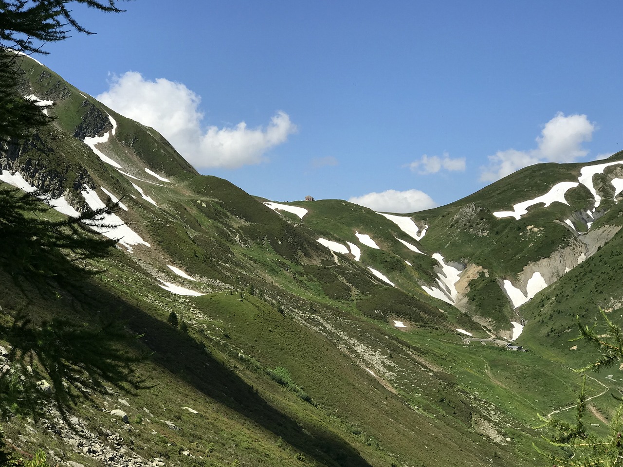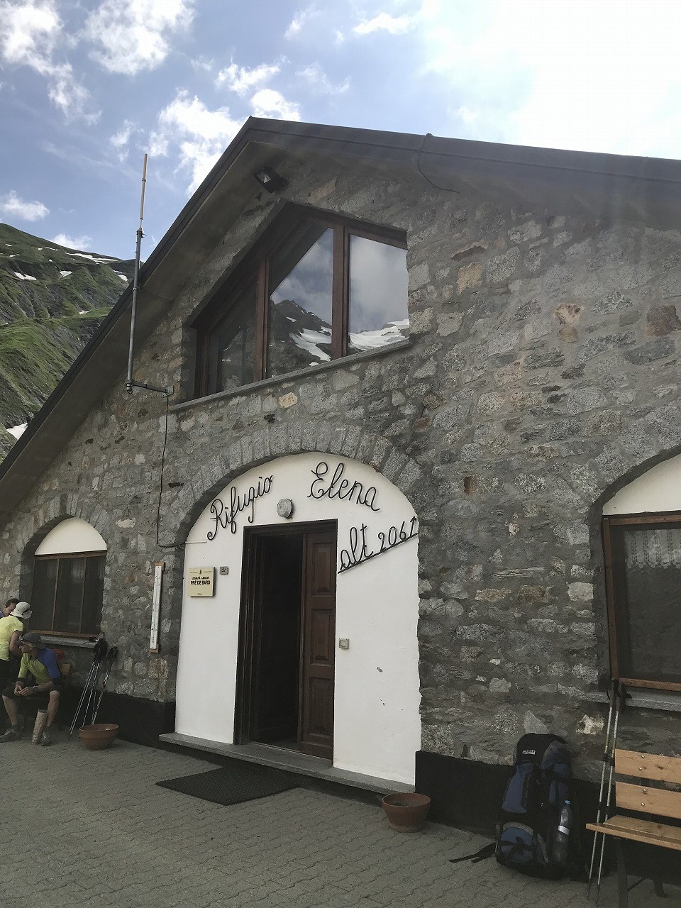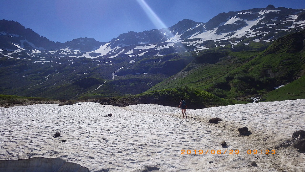 | セーニョ峠からの下り方向を見る | 下ってきた斜面を振り返る | エリザベッタ小屋 |