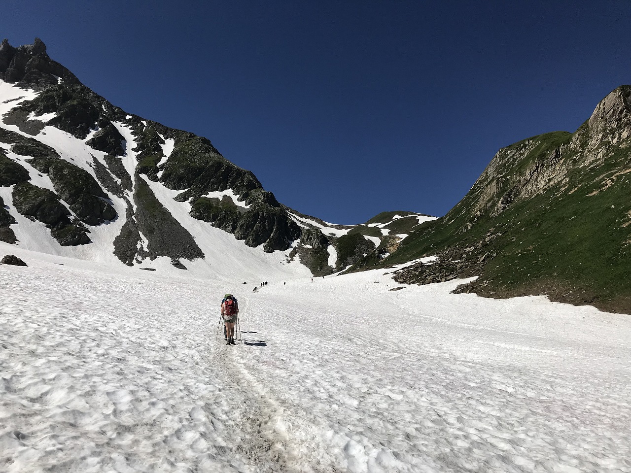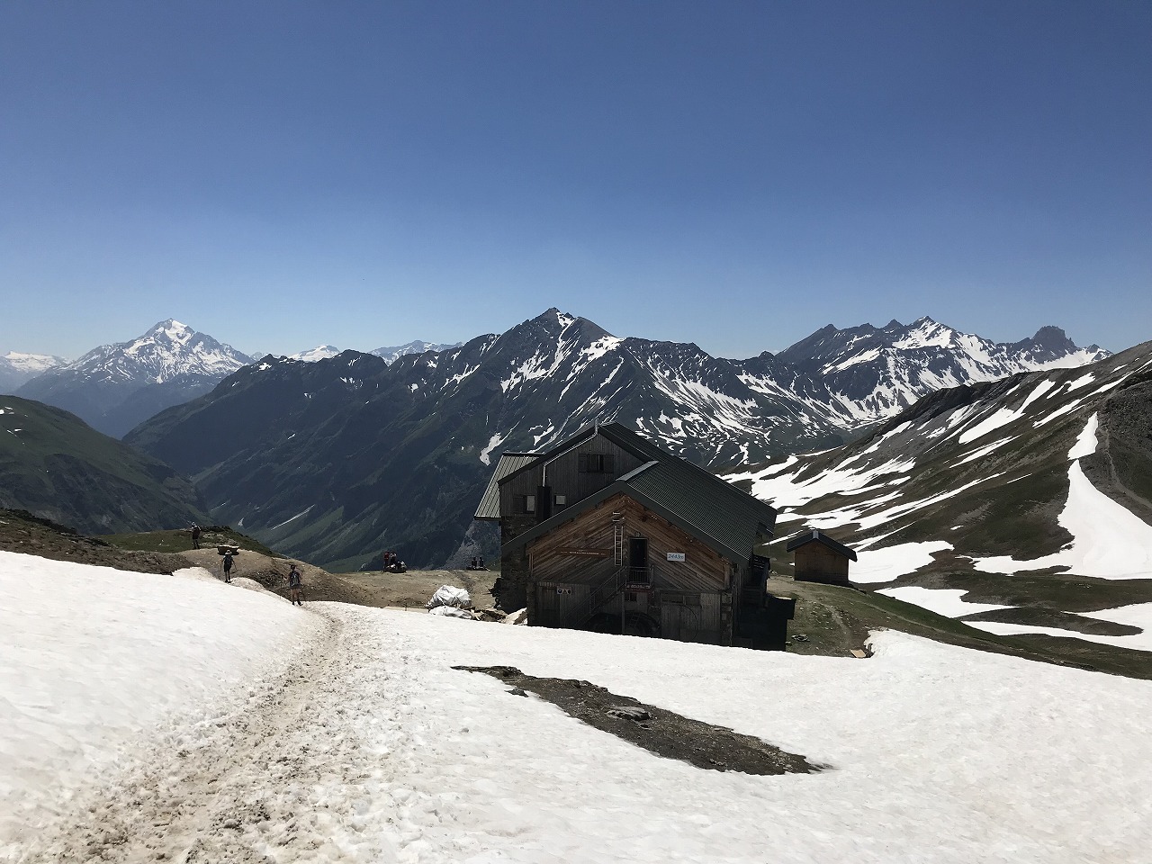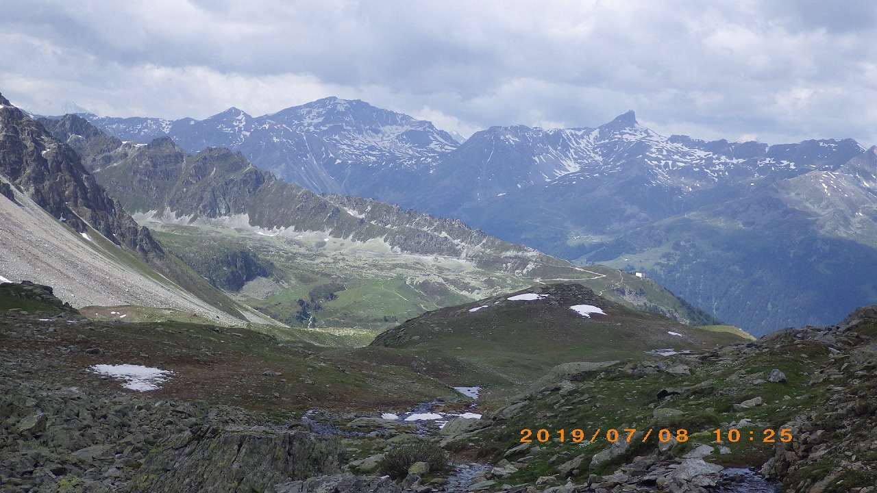 | セーニョ峠からの下り方向を見る | 下ってきた斜面を振り返る | エリザベッタ小屋 |