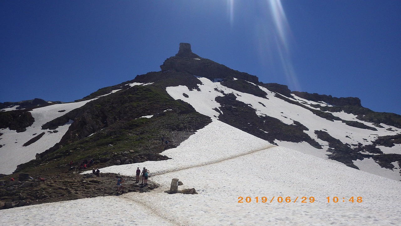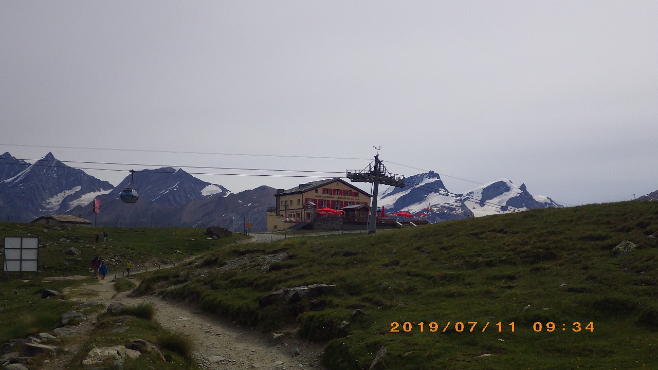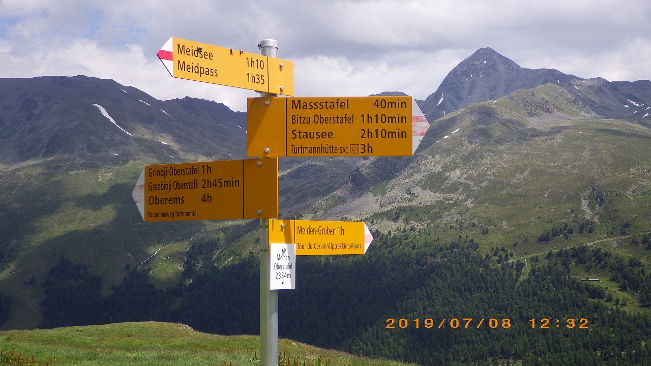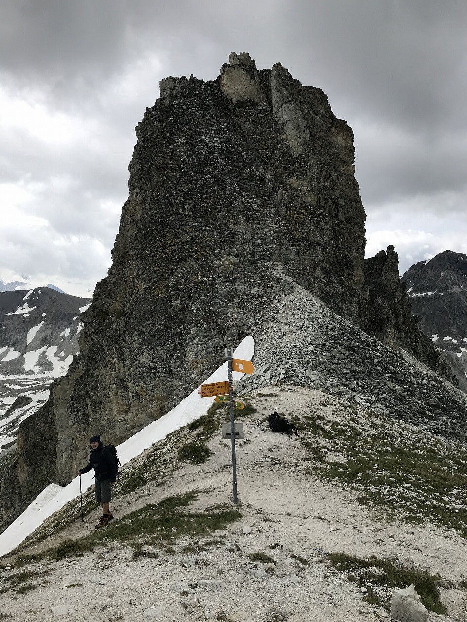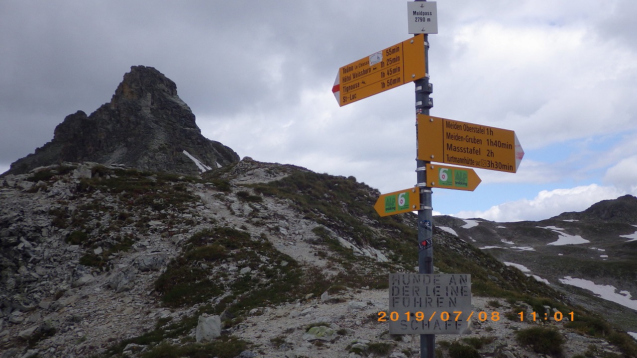 | Meidpassの象徴の岩峰が見えてくる | Meidpass | ヴァイスホルンは雲に隠れて見えない |