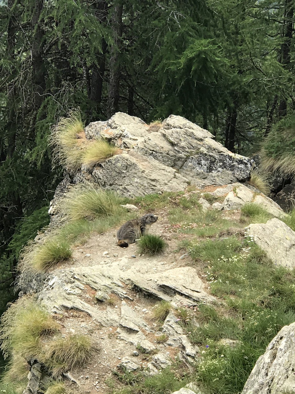 | 下りは急斜面をトラバース気味にJungenを経由して行く | マーモット | |