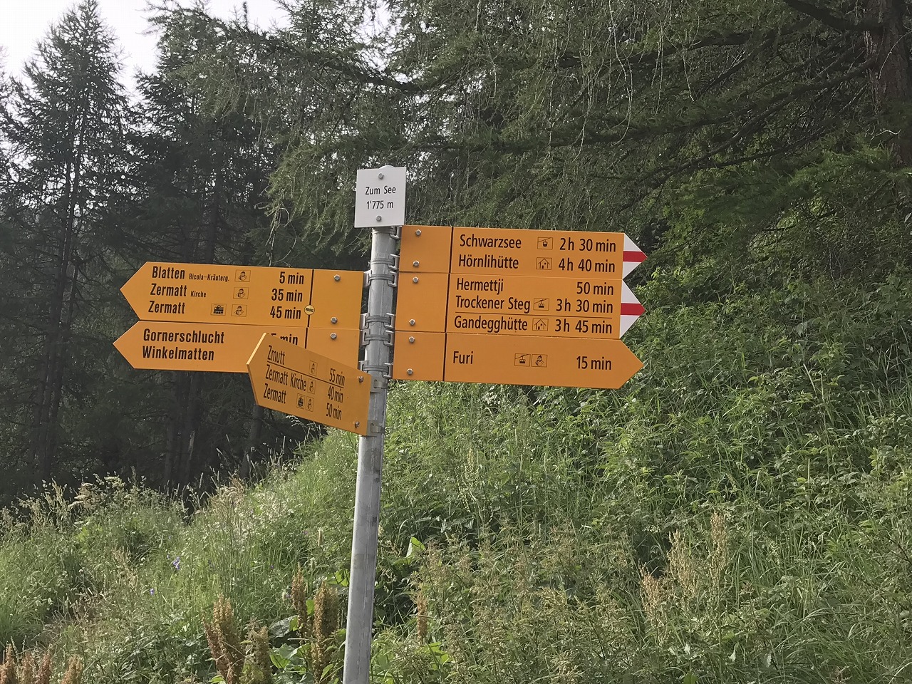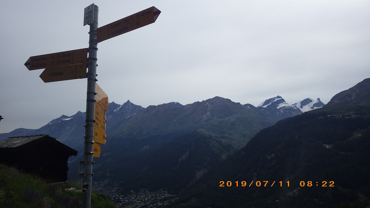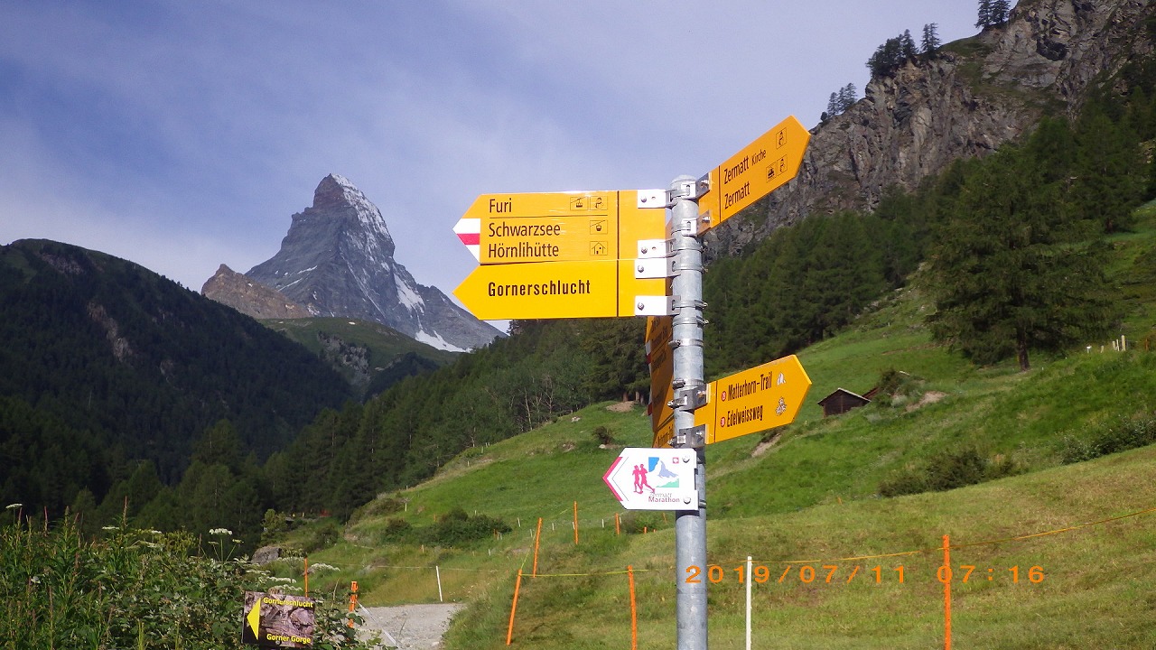 | Zermattの街外れからスタートする | ||