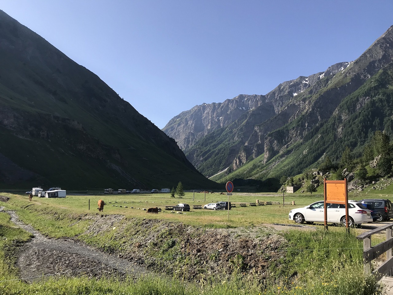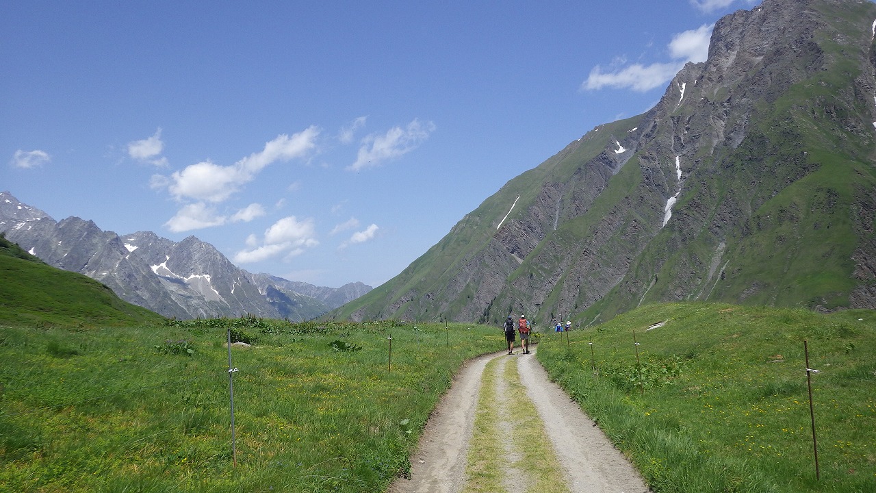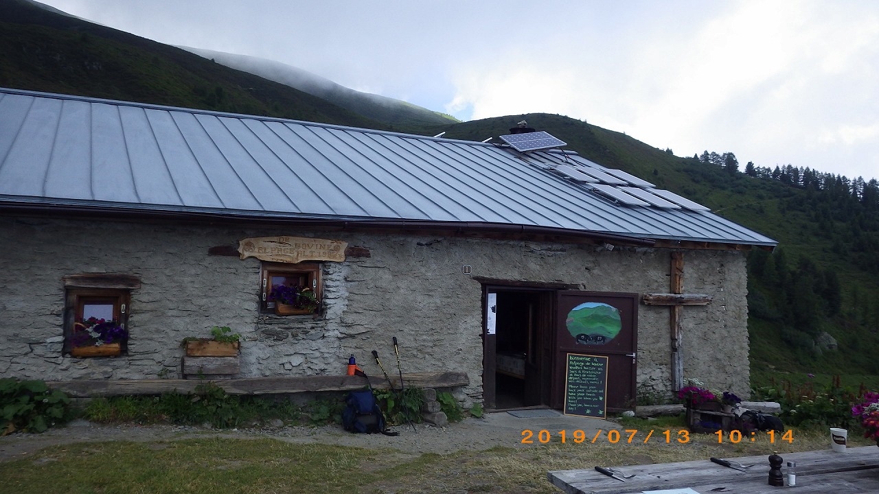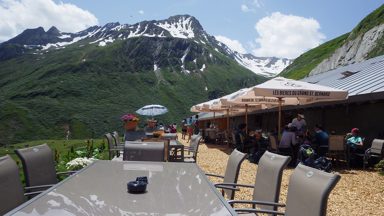 | 登山道を降りきった所にあるLa Peule小屋のレストランでビールを飲む | La Foulyに向けての長い歩き | |