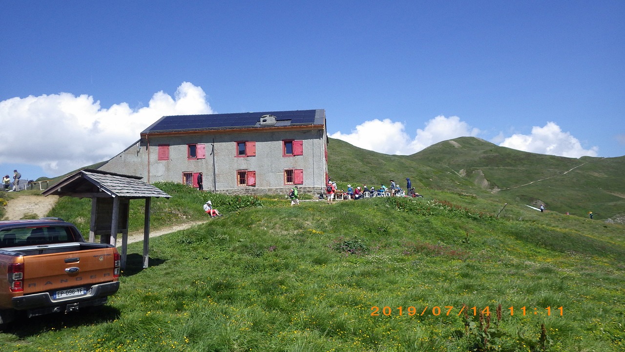 | Col de Balmeまでもう一息。12:15 Balme峠に到着。屋外のレストランで沢山の人が休憩している | ||