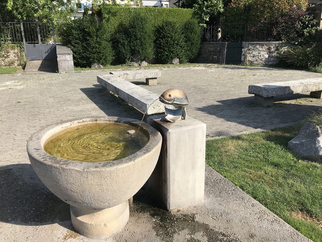 | Champel経由のハイカーは2人だけだ | 随所にこのような水飲み場がある | 街中を歩く |