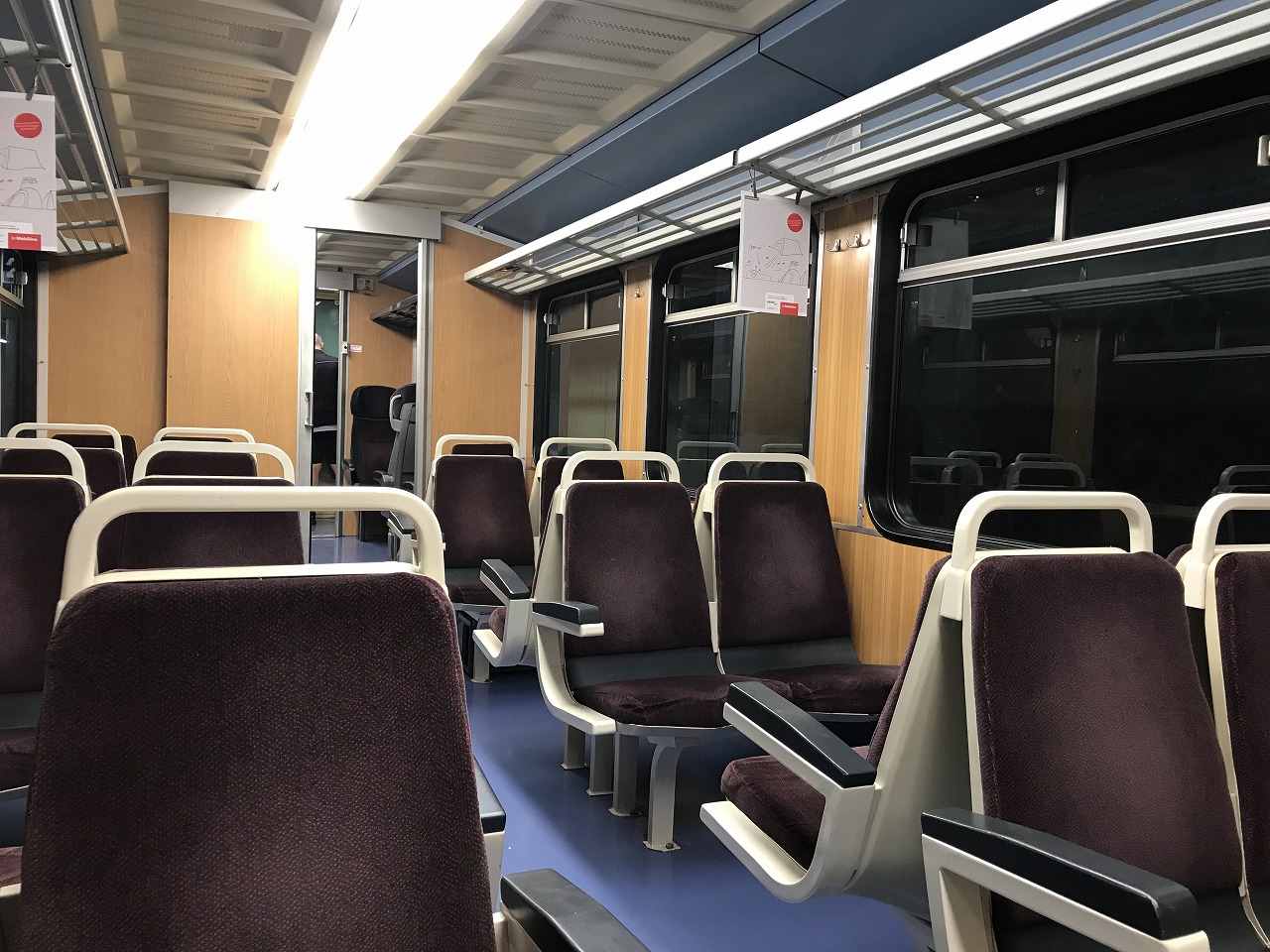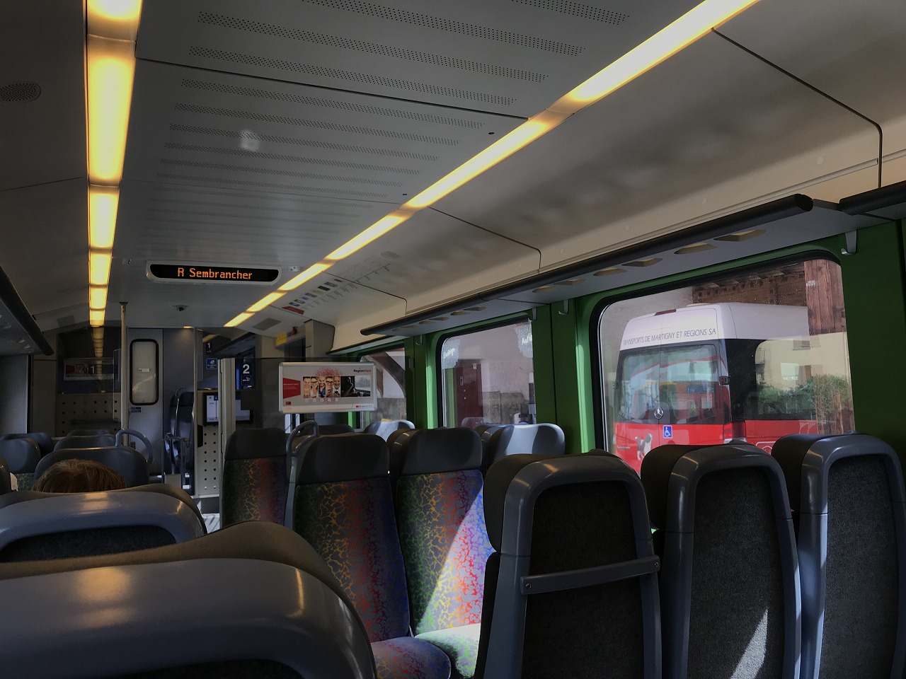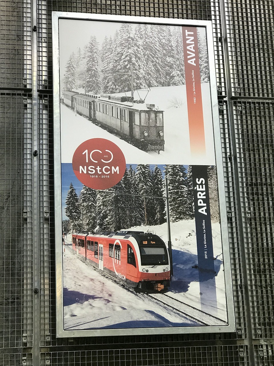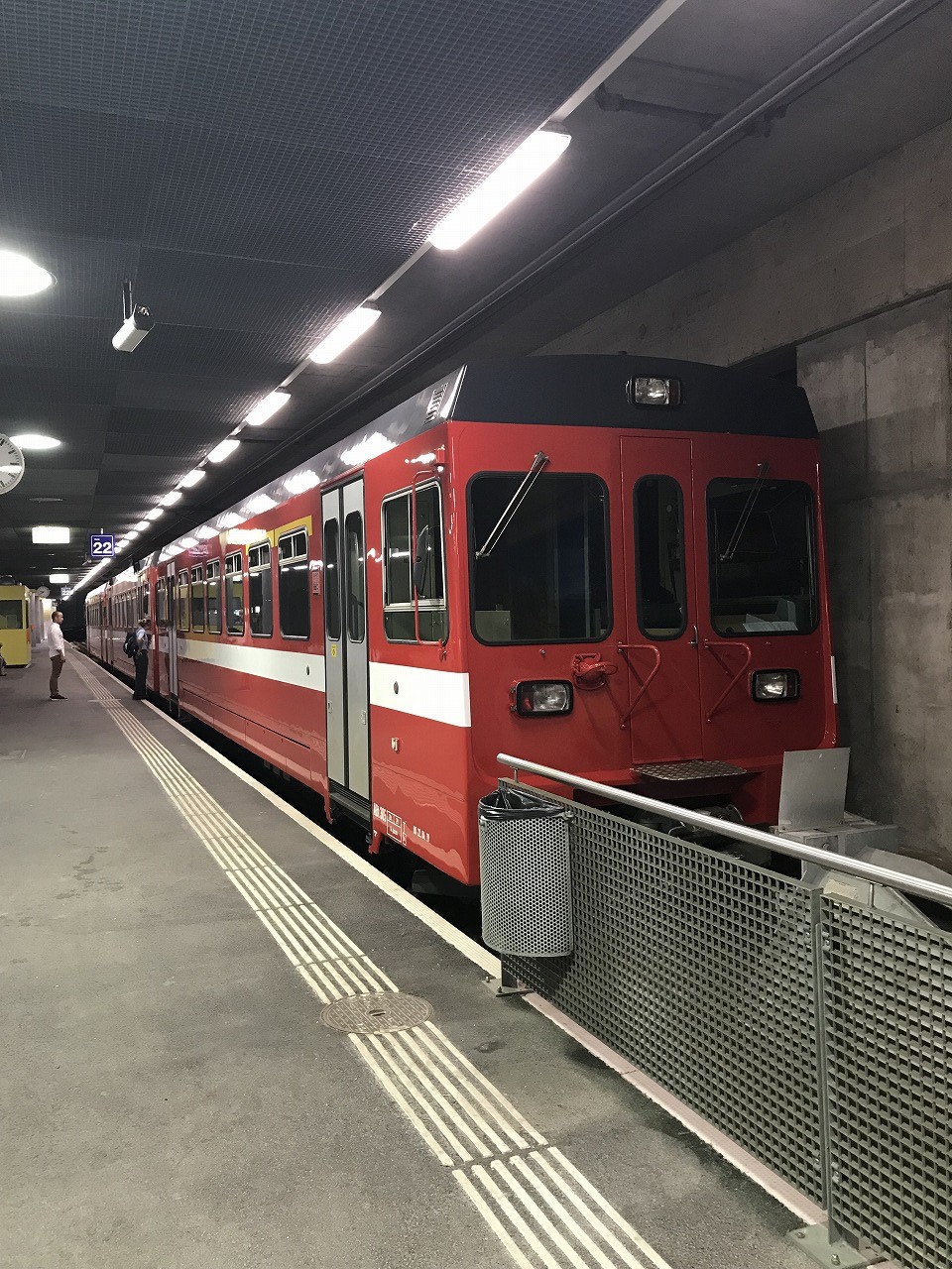 | Nyon駅を出て地下道をくぐってNStCM鉄道のプラットフォームに移動する 1時間に1本程度の接続がある。発車時間が近くなると無人だったプラット フォームに人が徐々に集まり始める。20人程が乗り込んでくる |