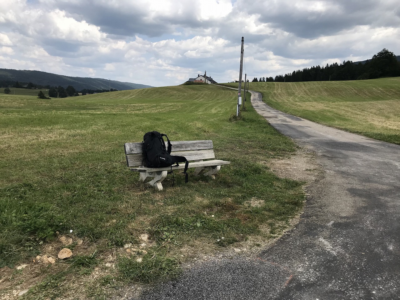 | Grubenまで4hの表示。広い車道を下り気味に辿っていく | ||