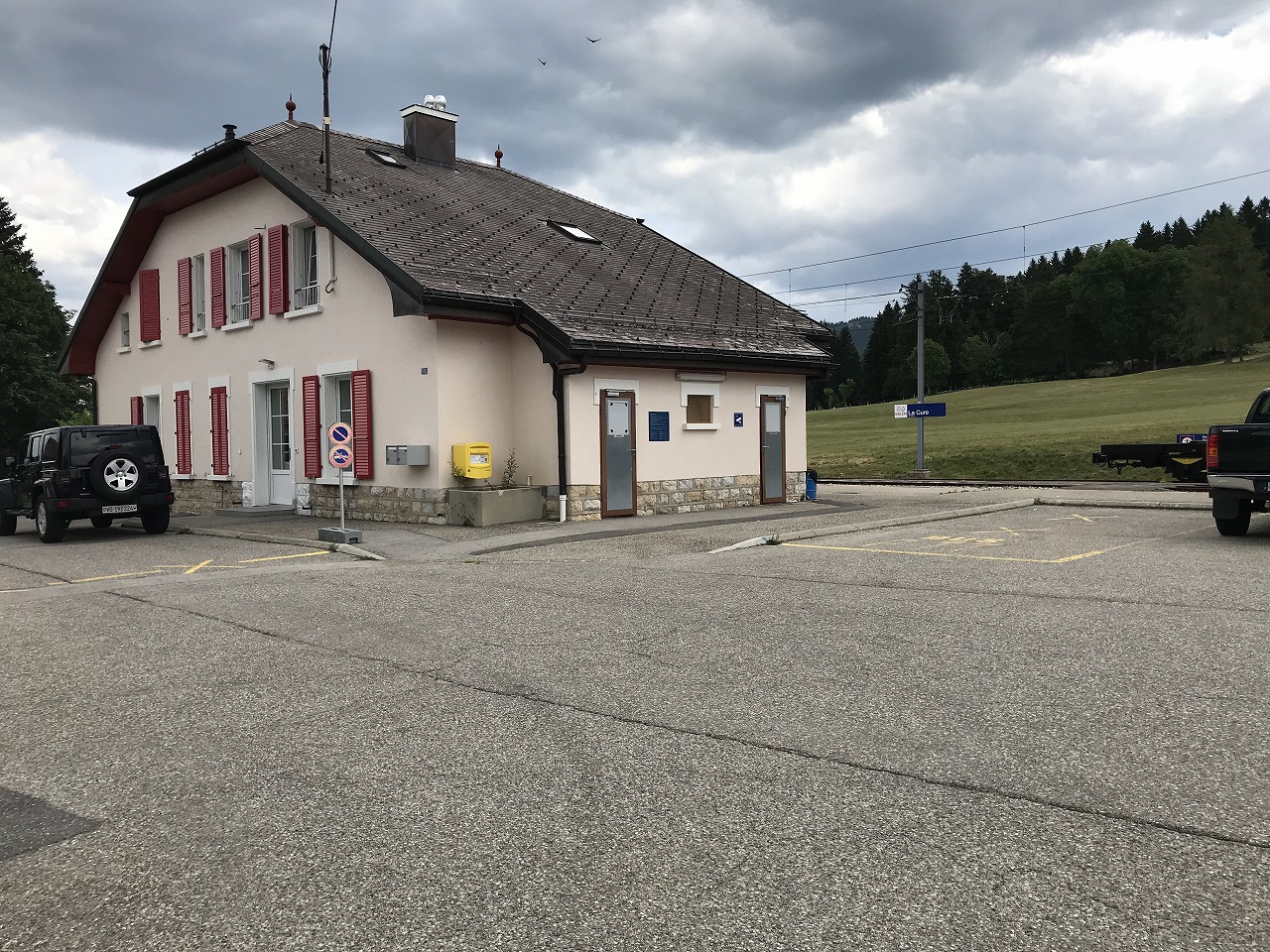 | La Cureの駅舎は新しくなった?ハイキング姿の5人ほどのグループが降りてきた。結構人気のスポットのようだ | ||