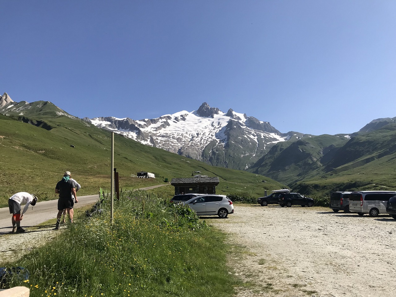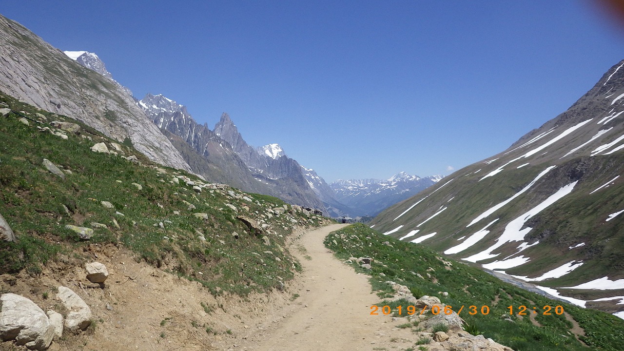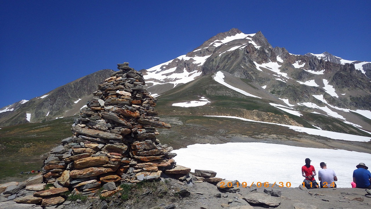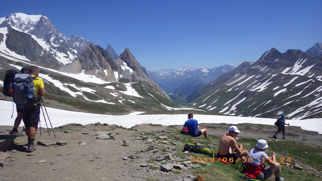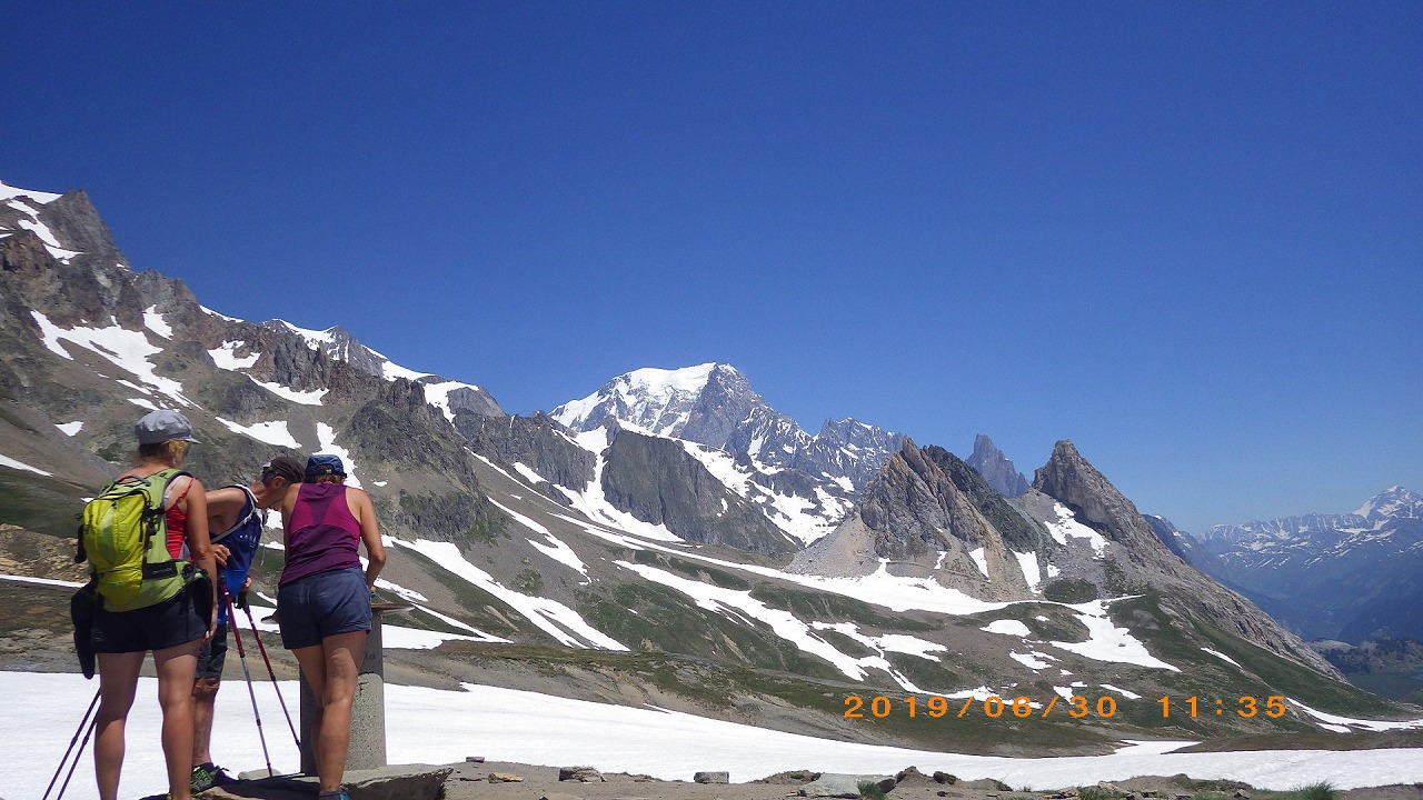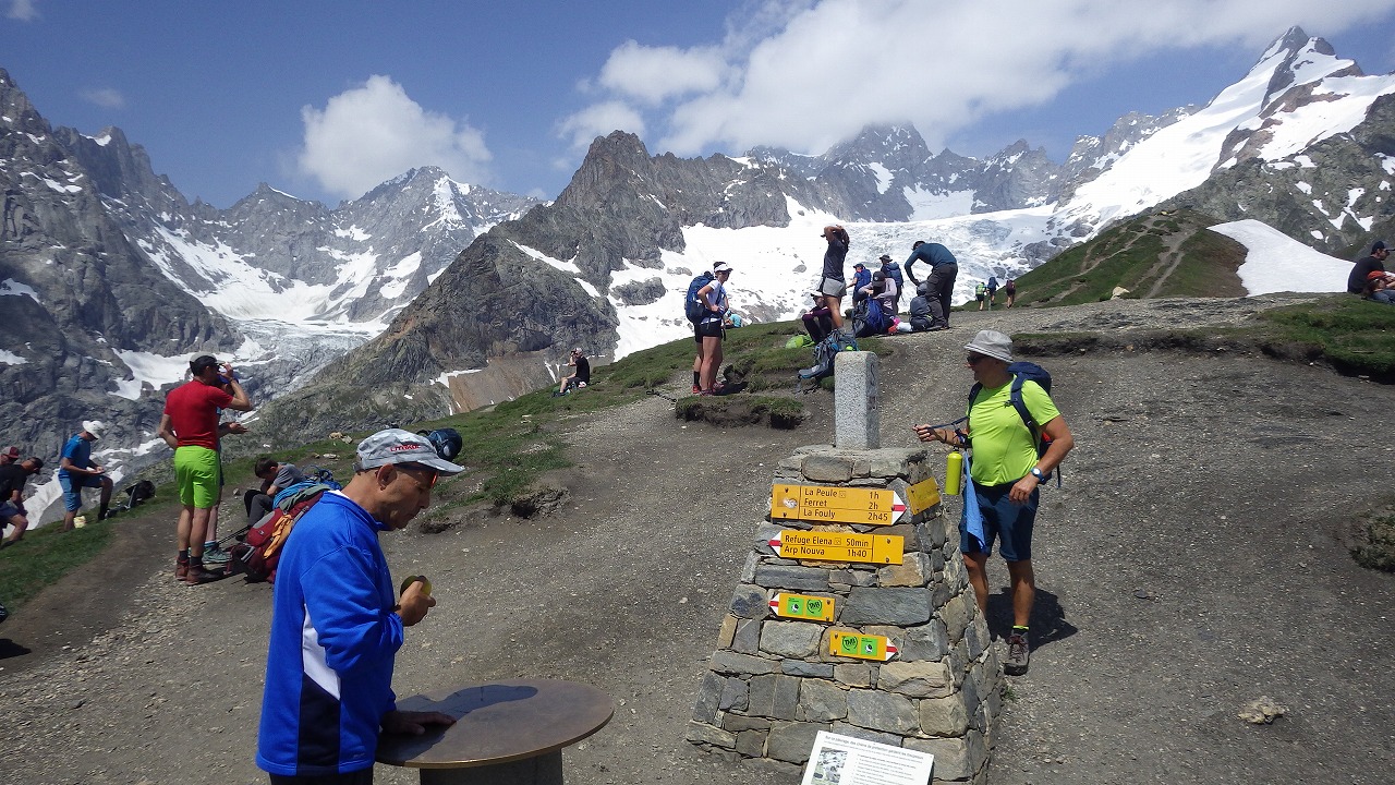 | セーニョ峠に到着する | 大勢の人が休んでいる | セーニョ峠から見るMont Blanc山群 |