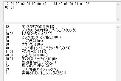 | デバイス・ディスクリプタ | 18 | ベンダーID、プロダクトID等、機器を識別するための情報です |