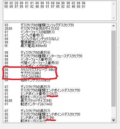 | MSC(Mass Storage Class) | 0x08 | ハードディスク、USBメモリ |