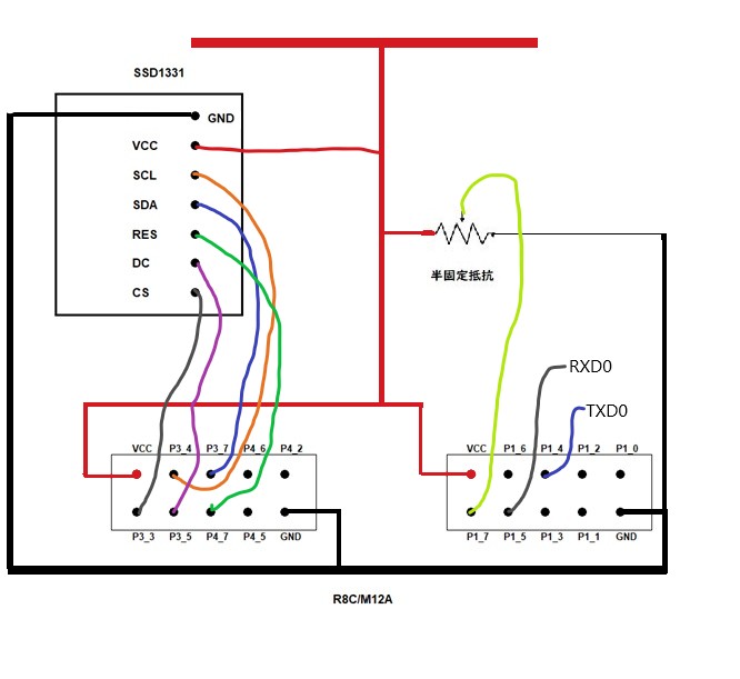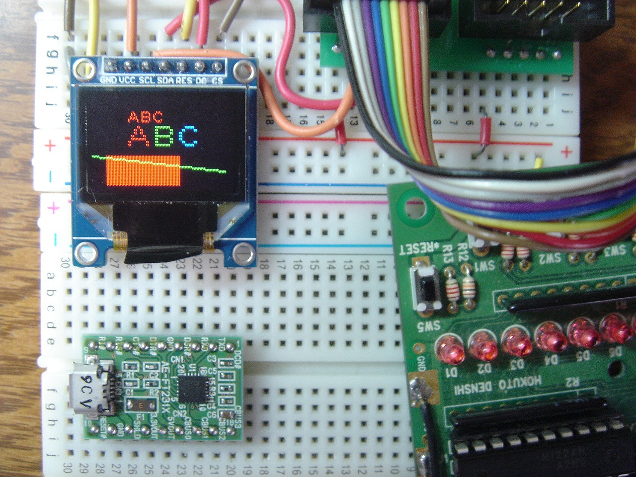 SSD1331制御のOLEDはArduinoの項でも扱っています。SPI通信の手順は基本的にはArduino と同じなのですが、R8C/M12Aで扱う場合はいささか異なるクセがあります。こちらの知識が不足のせいもあるのでしょうが、いささか取り扱いに手間取りました。