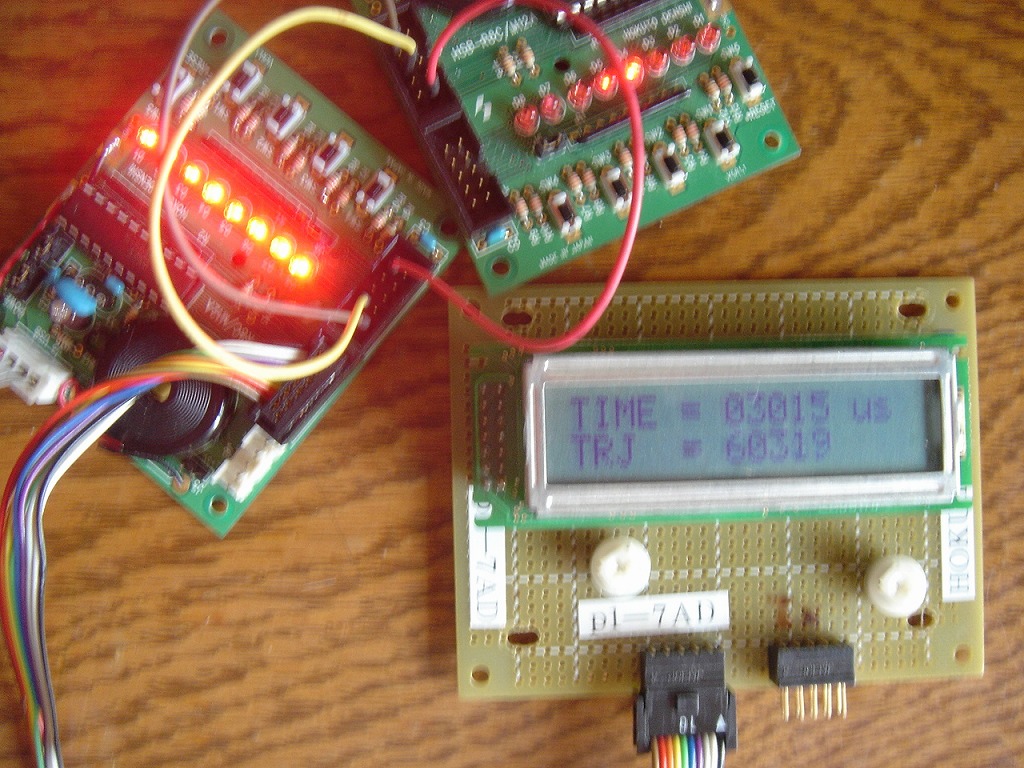 させて、下側のボードのTRJIO端子に入力し、LCDに表示させている。